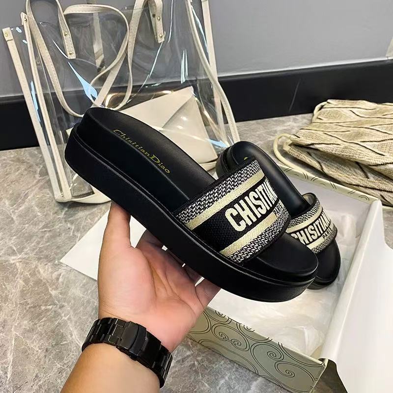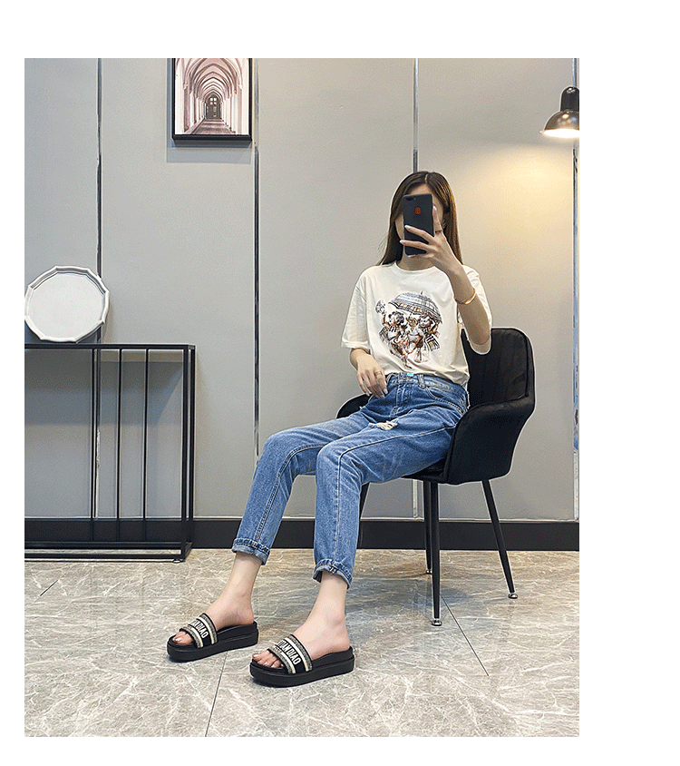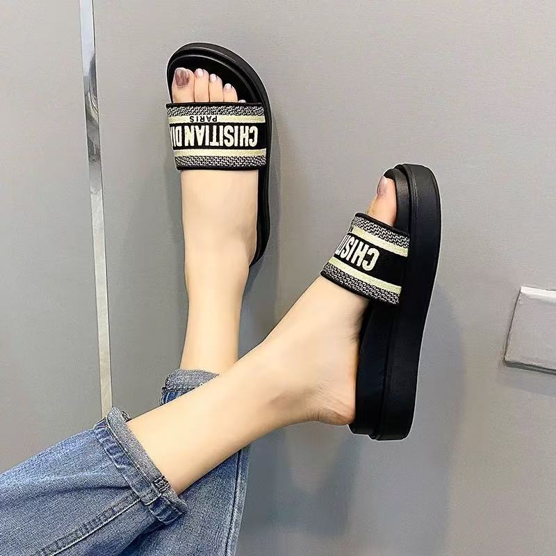 D 홈 같은 스타일 편지 수 놓은 두꺼운 하단 샌들 새로운 명암 컬러 휴가 외부 착용 한 단어 증가 샌들 여성용 두꺼운 힐스토어 가기