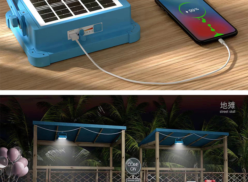 태양 충전식 휴대용 휴대용 램프 다기능 가정용 실외 USB 비상 조명 휴대용 LED 작업 조명