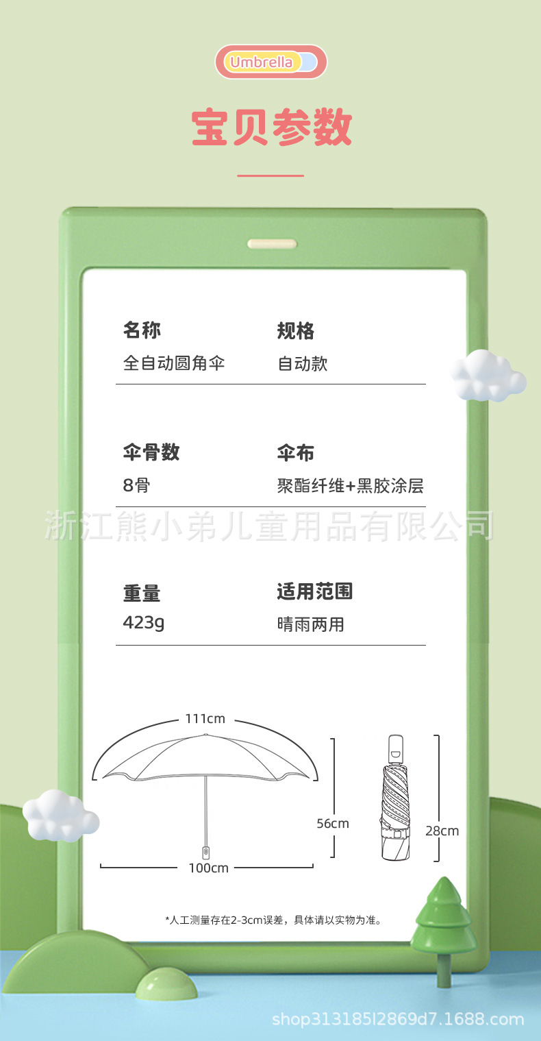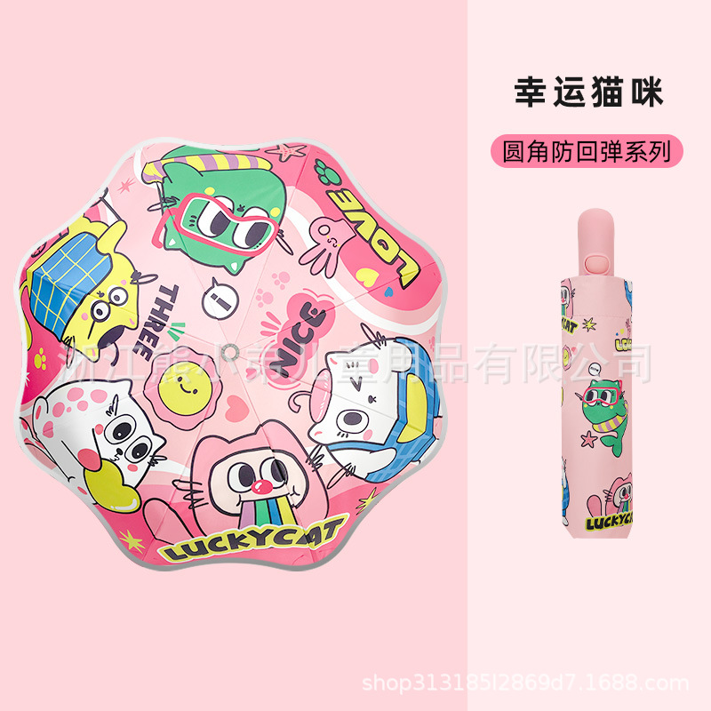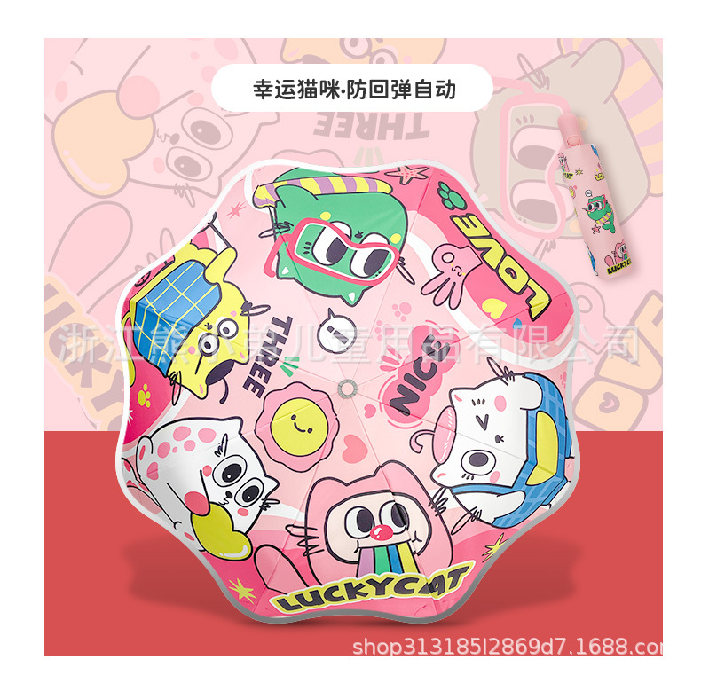 안전한 반동 방지 어린이 우산 여중생 남학생 화창한 우산 이중 목적 접기 섹션-폐쇄 자동 우산