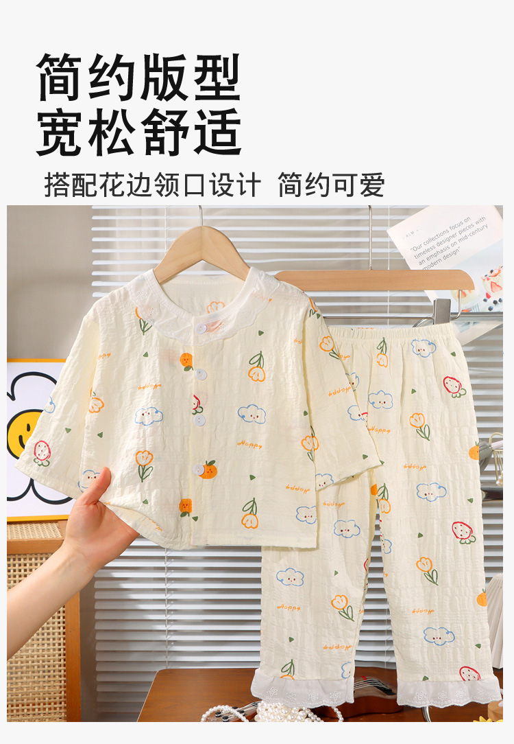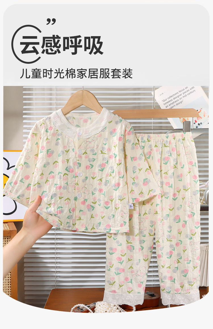 여자 잠옷 2025 새로운 9 점 소매 얇은 집 옷 여자 아기 시간 면 한국식 에어컨 세트스토어 가기
