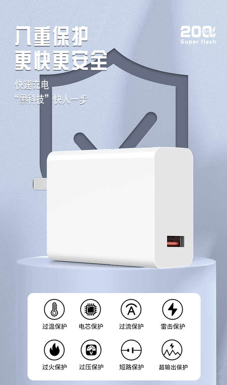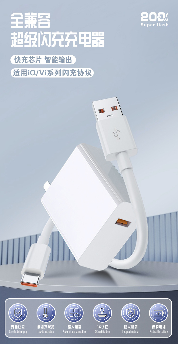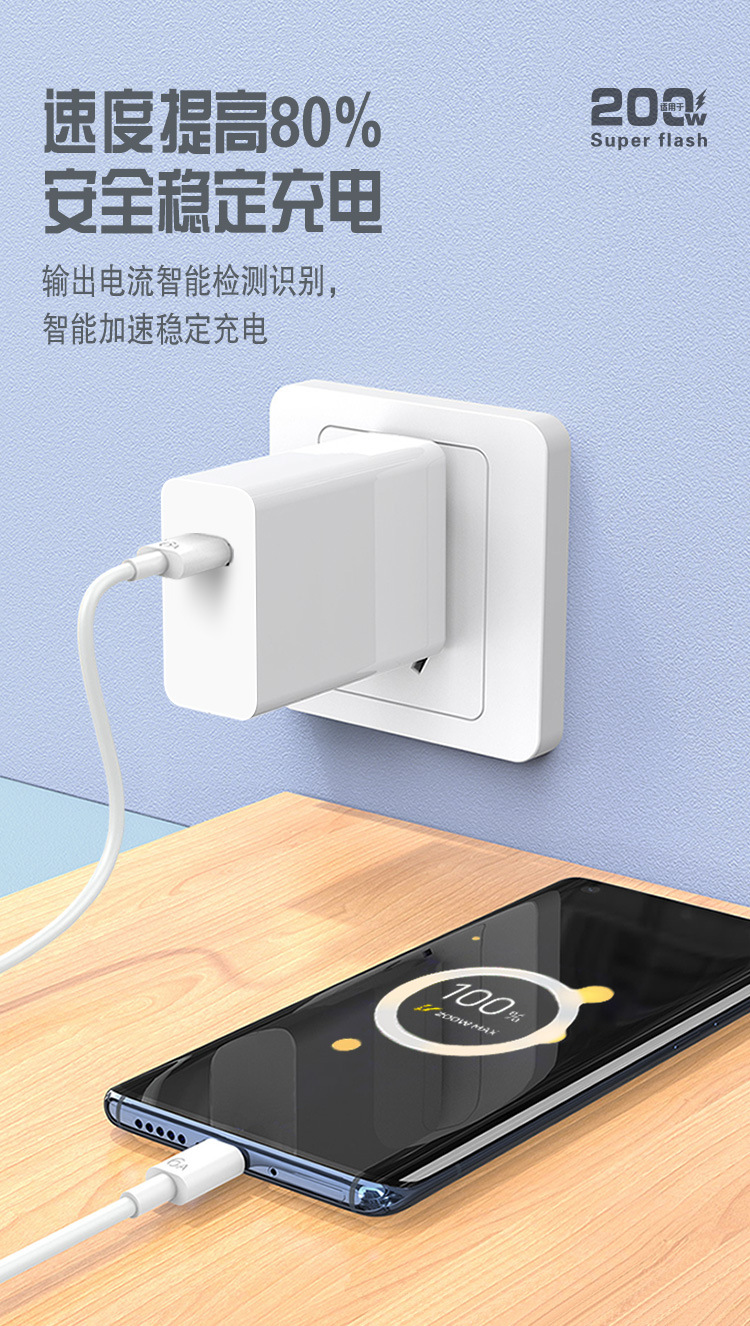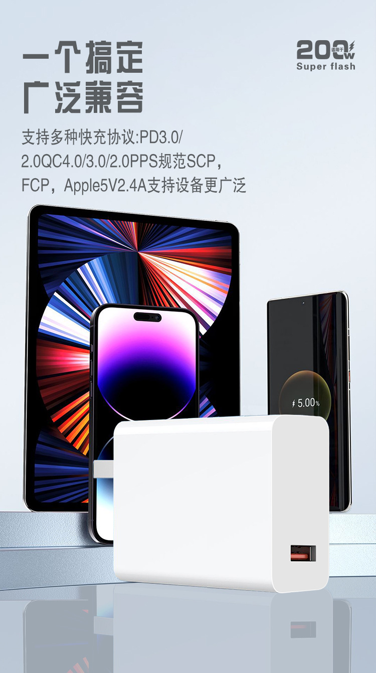 3C 인증 갈륨 질화물 충전기 200W 슈퍼 플래시 충전 애플 샤오 미 삼성 생체 휴대 전화 충전 헤드스토어 가기