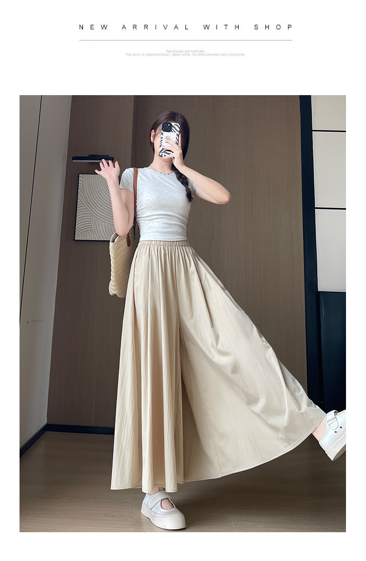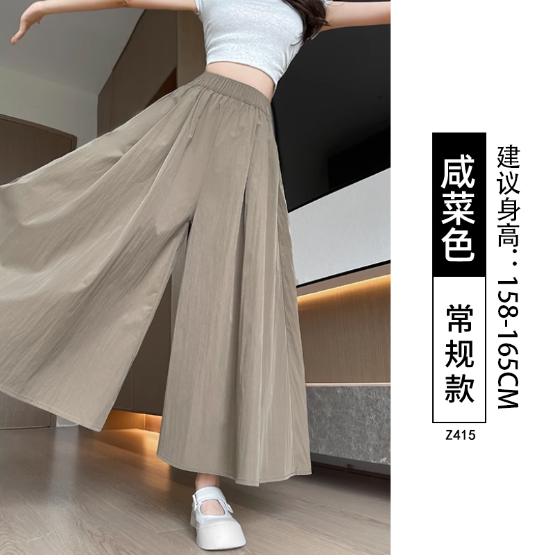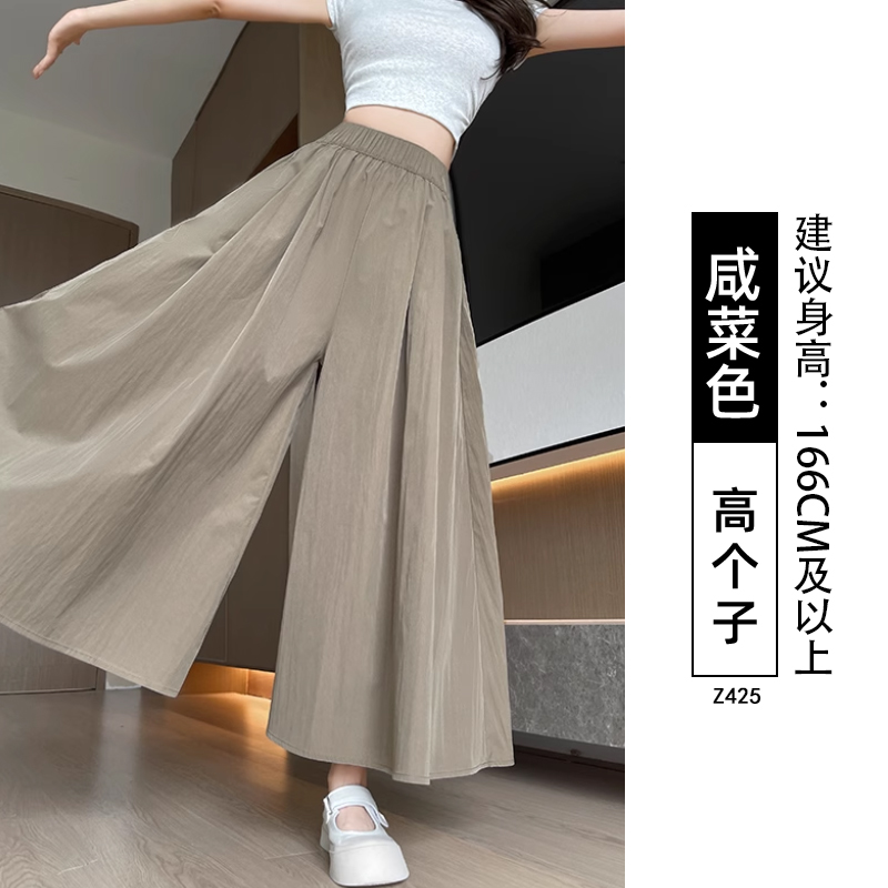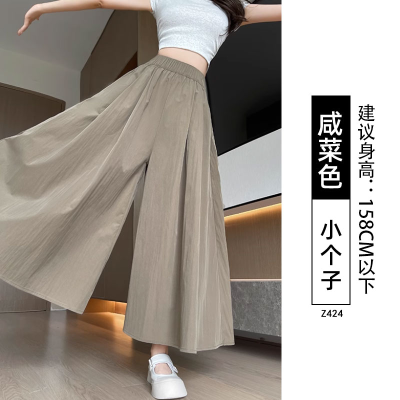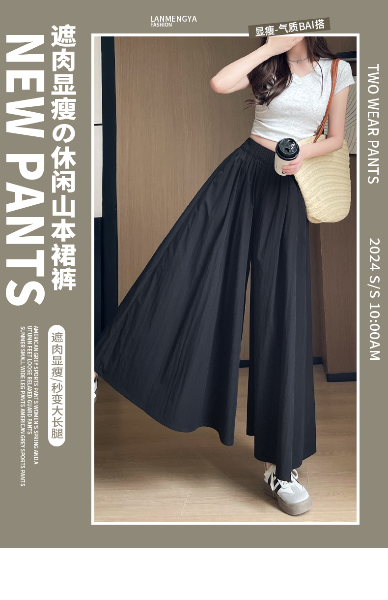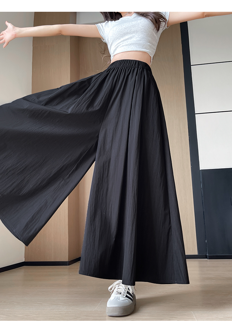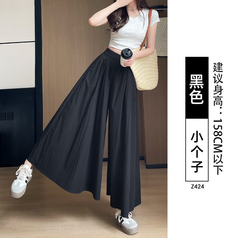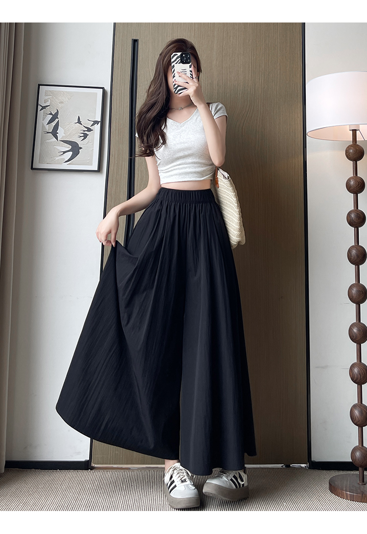검은 야마모토 Culottes 여자 여름 2025 새로운 높은 허리 더미 A-라인 스커트 작은 얼음 실크 넓은 다리 바지스토어 가기