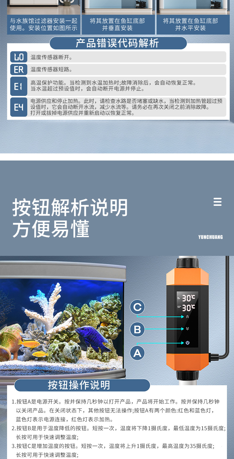 지능형 수조 가열 막대, 자동 전원 끄기, 가변 주파수 및 항온 LED 방폭형 세라믹 누출 방지 가열 막대를 맞춤 설정할 수 있습니다.스토어 가기