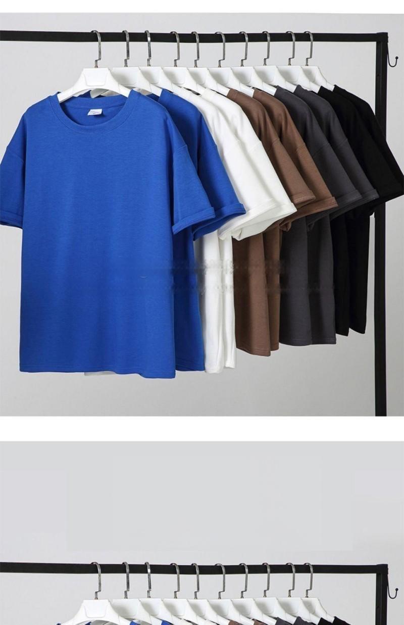 단색 헤비웨이트 티셔츠, 패셔너블한 기본 스타일, 데일리 레트로 핏, 순면 반팔, 남성용 심플하고 깔끔한 반팔스토어 가기