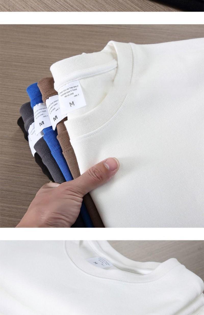 단색 헤비웨이트 티셔츠, 패셔너블한 기본 스타일, 데일리 레트로 핏, 순면 반팔, 남성용 심플하고 깔끔한 반팔