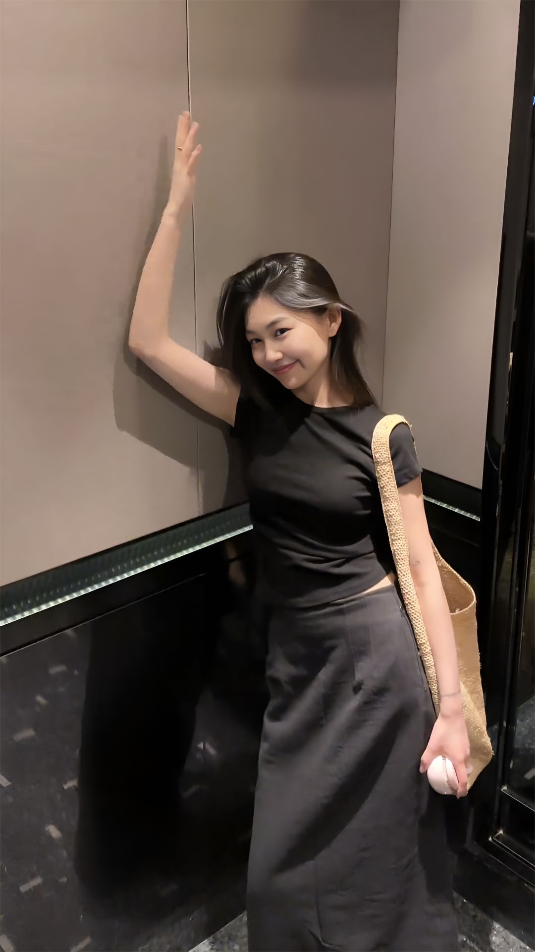 한국식 하이 엔드 센스 심플 통근 라운드 넥 반팔 티셔츠 여성용 슬림 핏 틈새 스플리트 스커트 캐주얼 세트스토어 가기