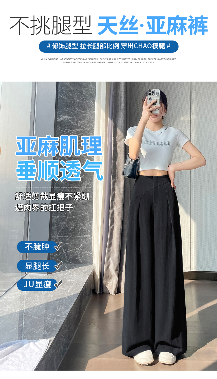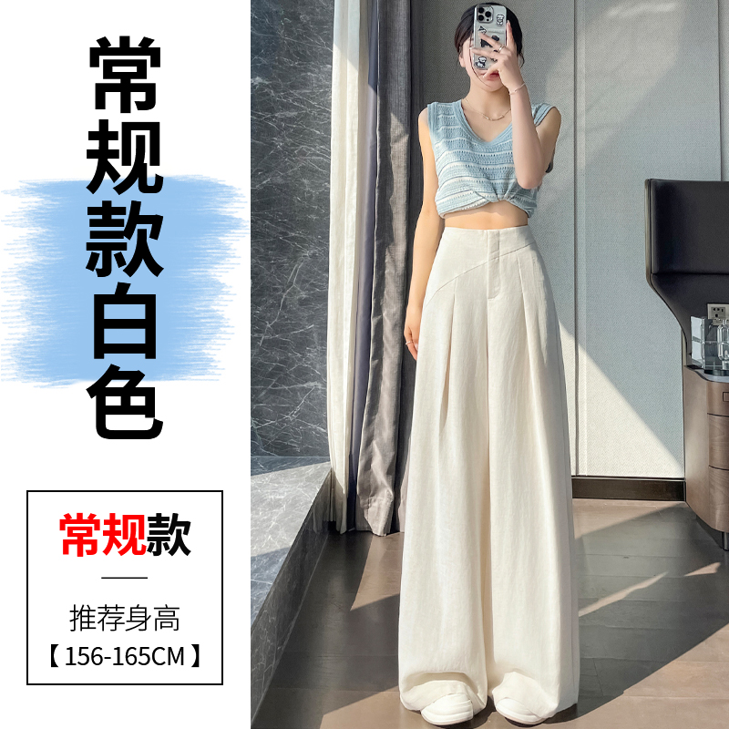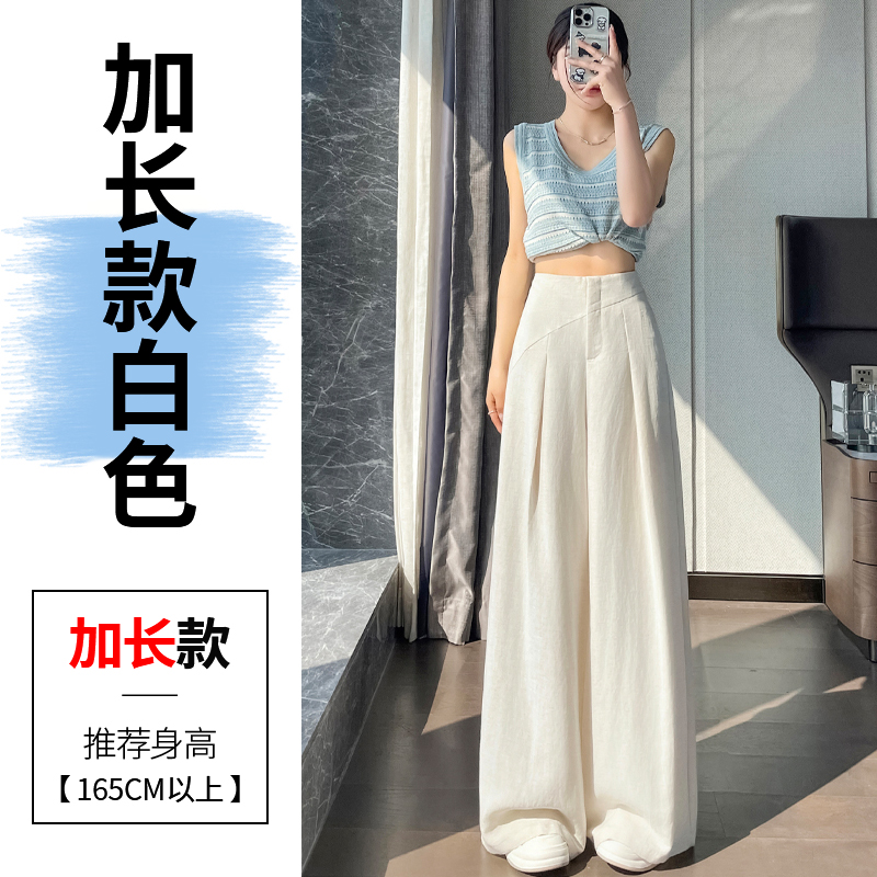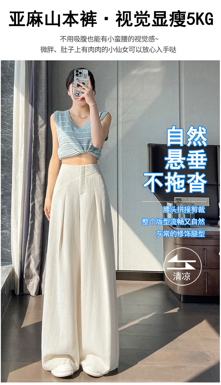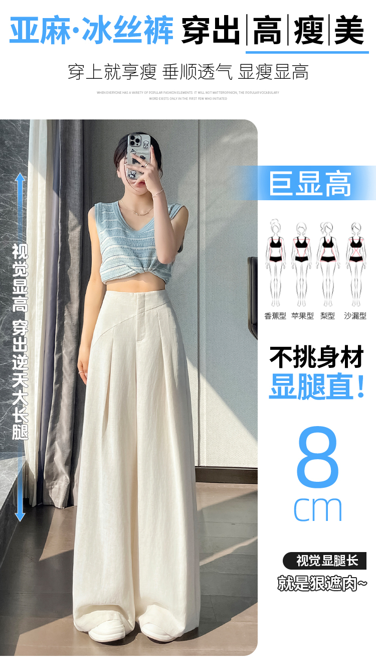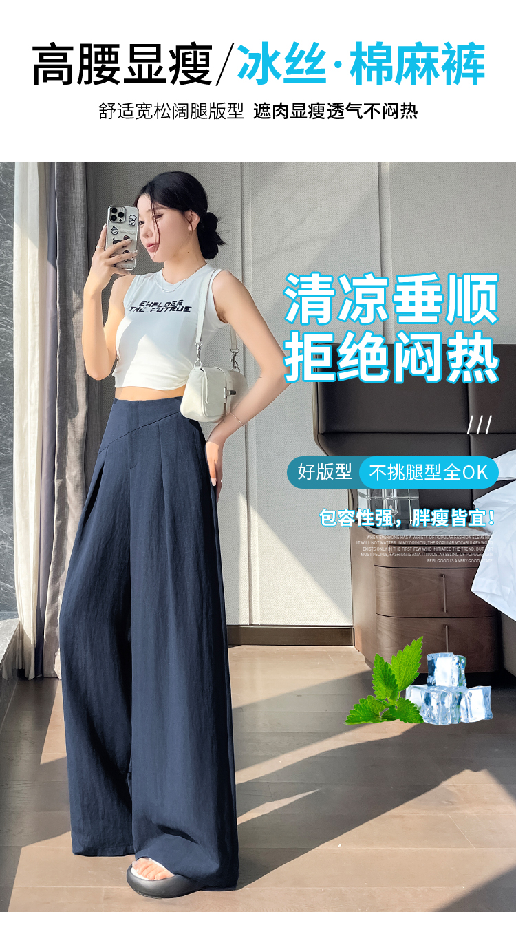 아이스 실크 린넨 바지 넓은 다리 바지 여성용 여름 얇은 높은 허리 느슨한 슬리밍 좁은 캐주얼 긴 바지스토어 가기