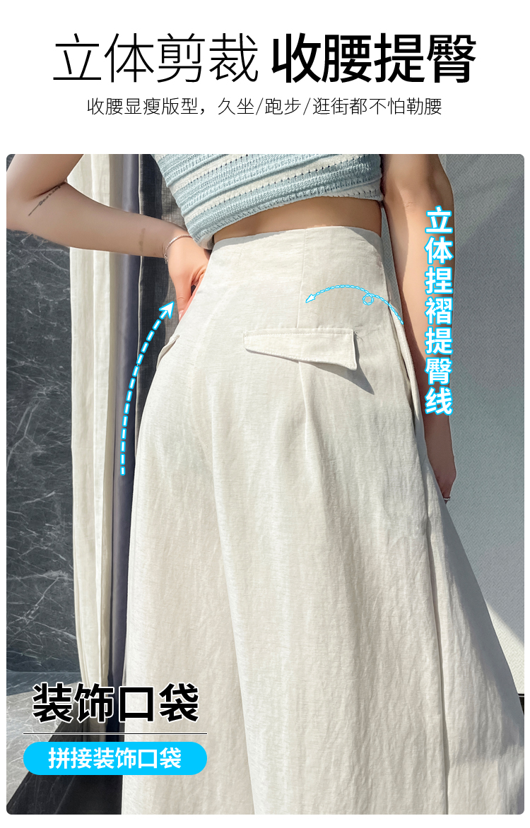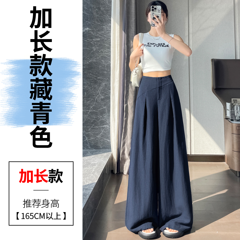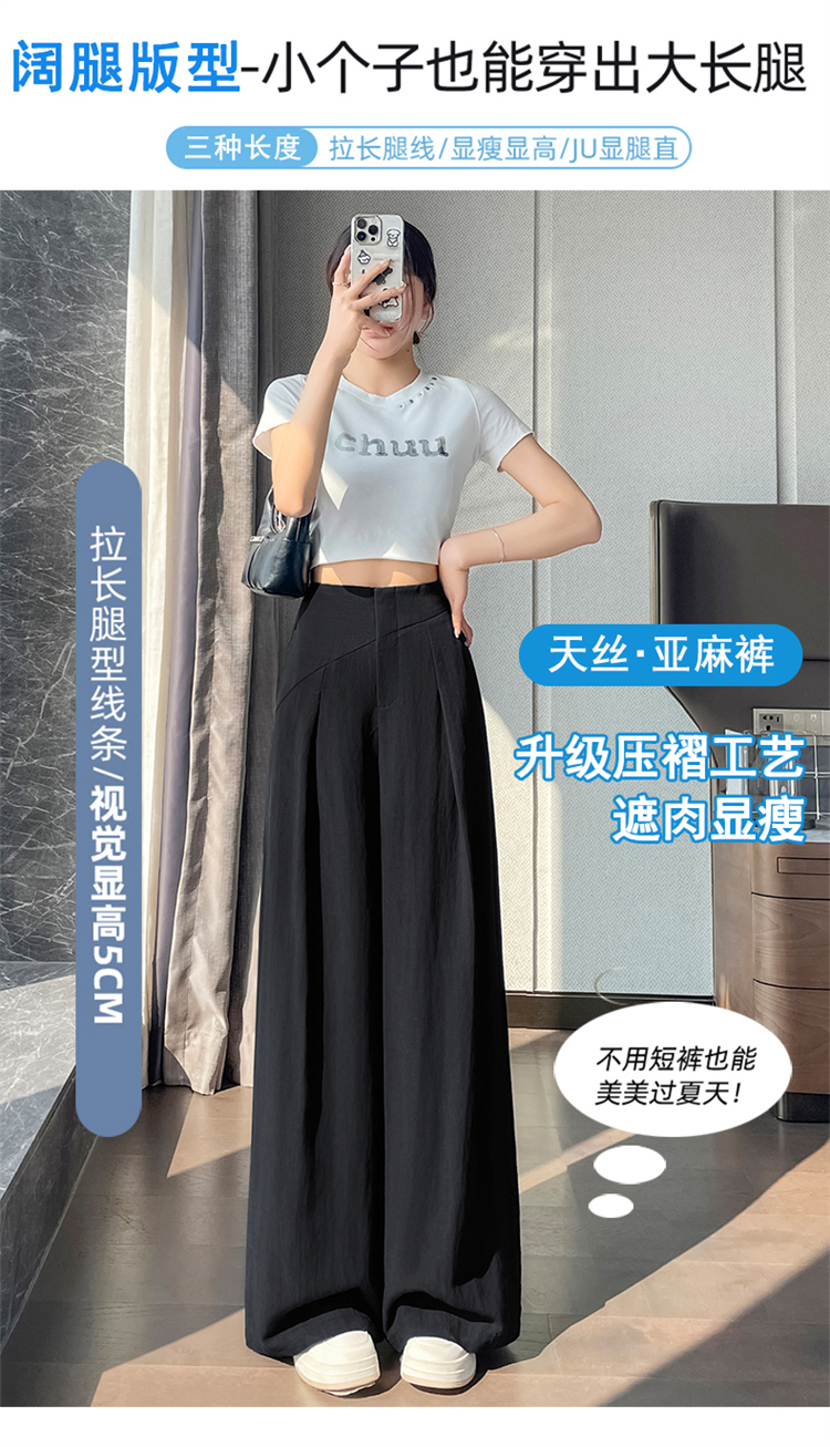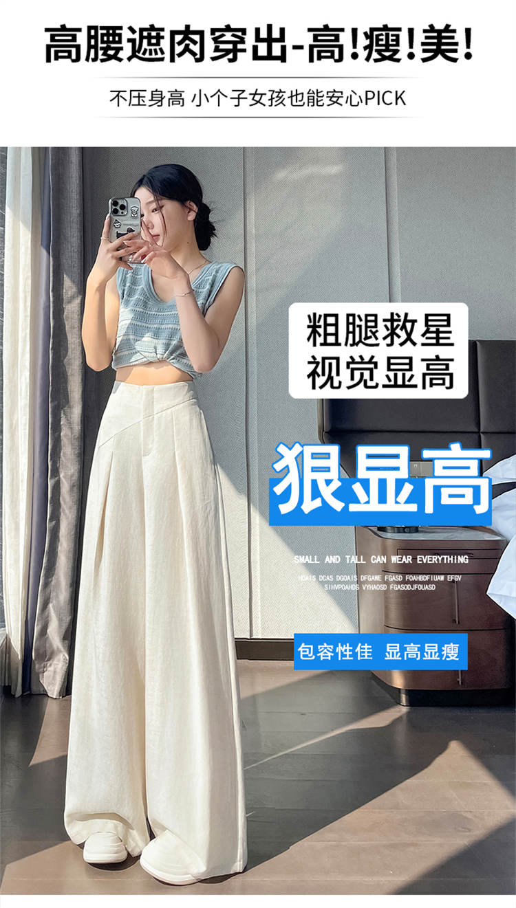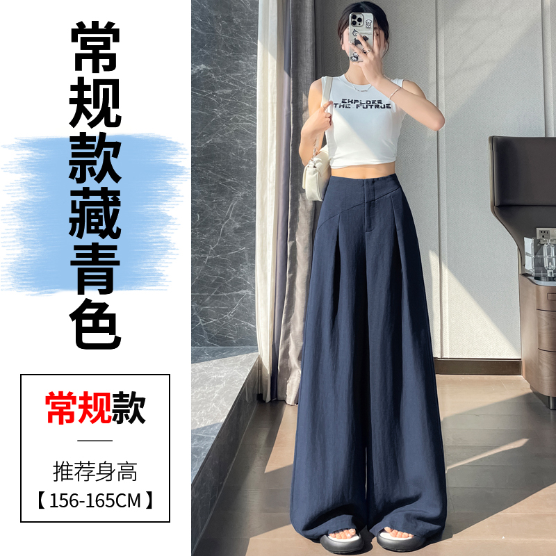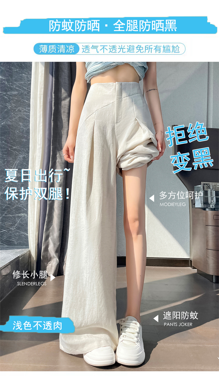 아이스 실크 린넨 바지 넓은 다리 바지 여성용 여름 얇은 높은 허리 느슨한 슬리밍 좁은 캐주얼 긴 바지스토어 가기