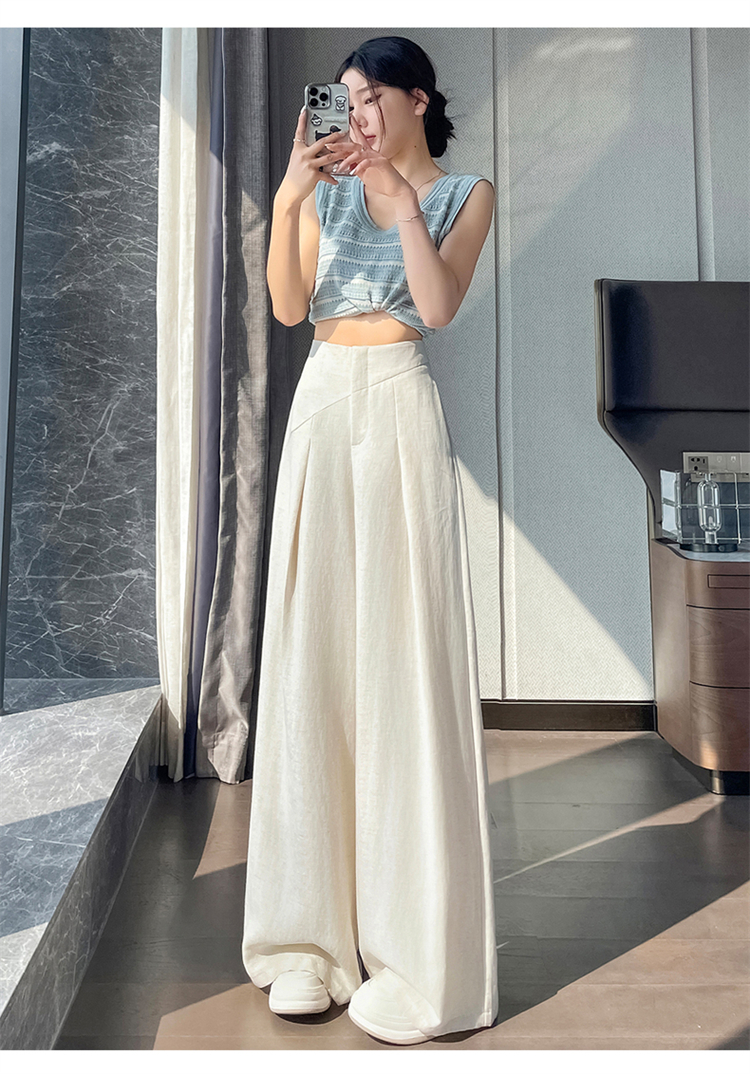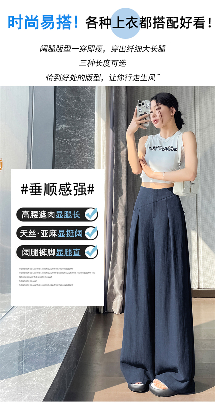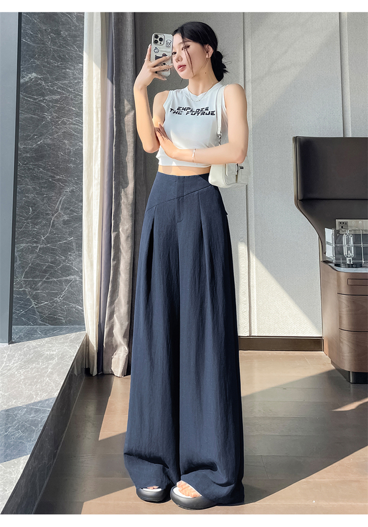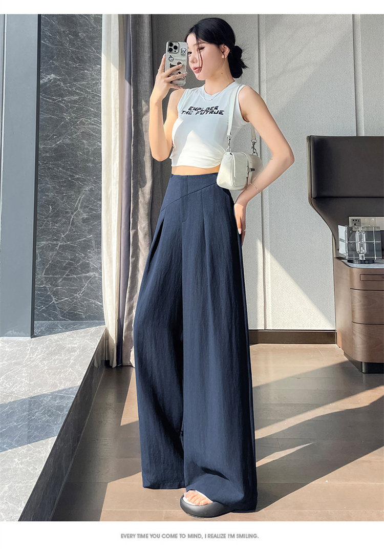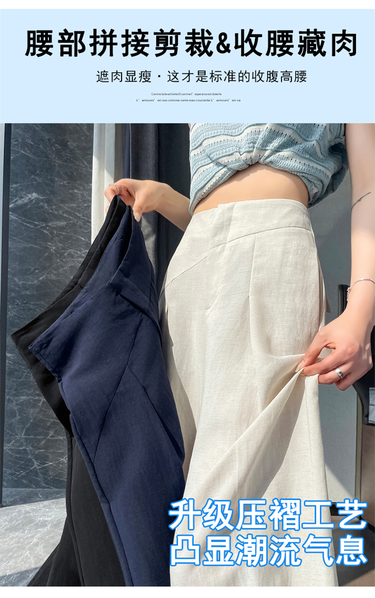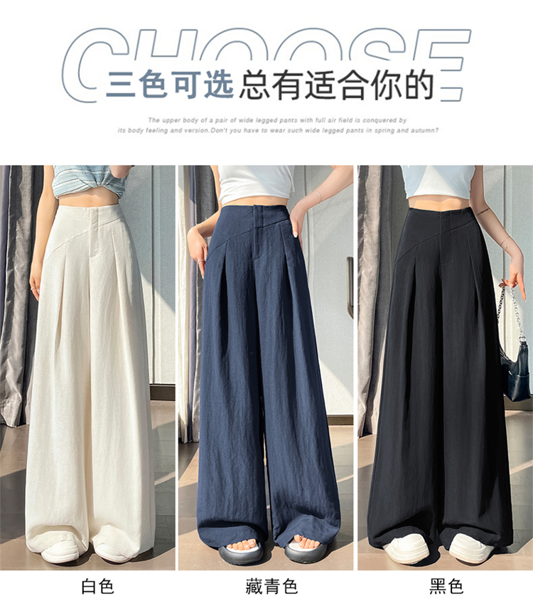 아이스 실크 린넨 바지 넓은 다리 바지 여성용 여름 얇은 높은 허리 느슨한 슬리밍 좁은 캐주얼 긴 바지스토어 가기