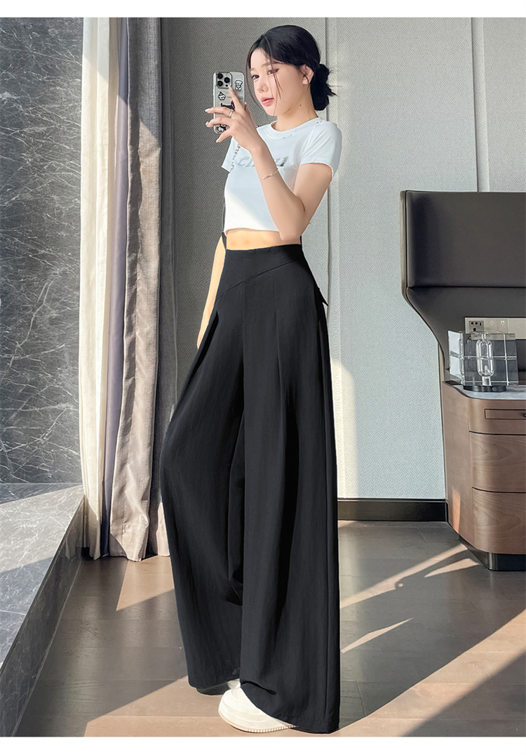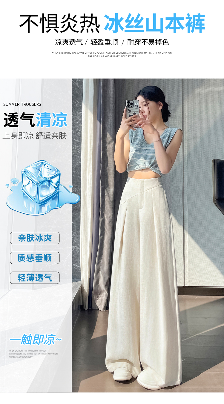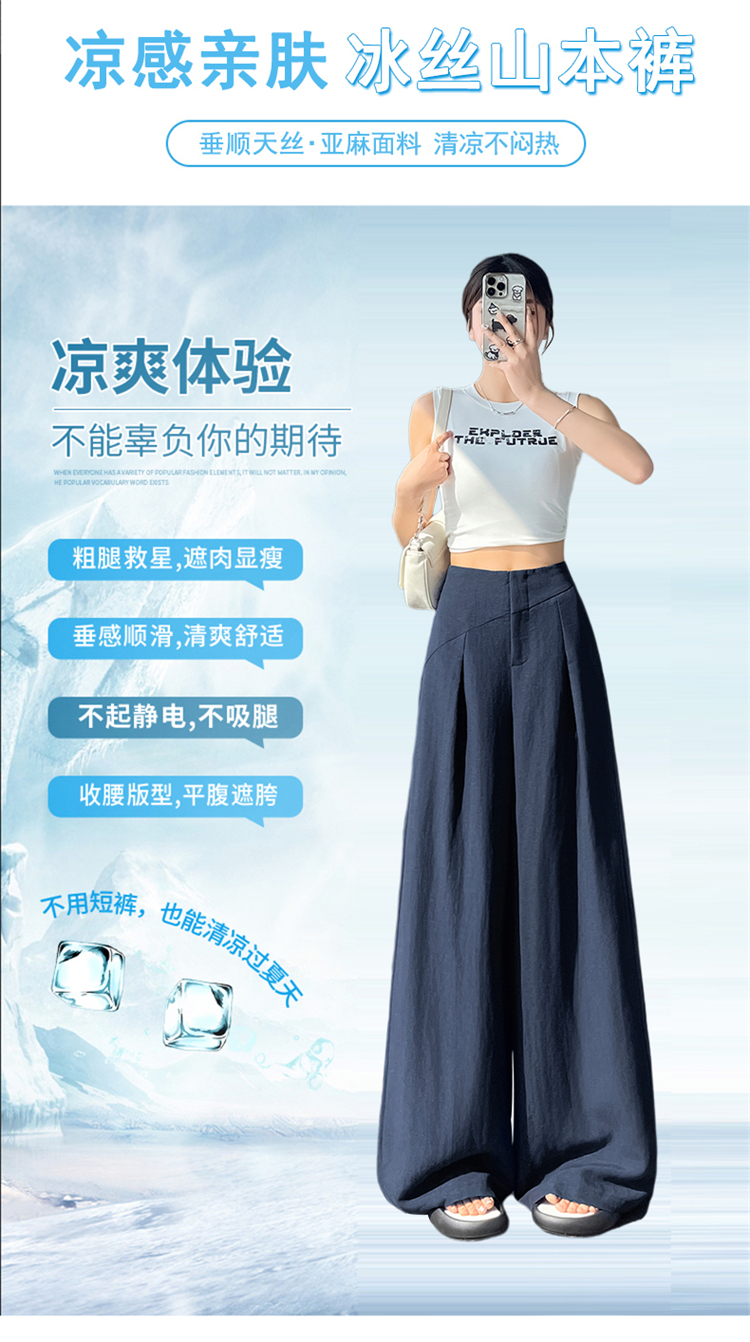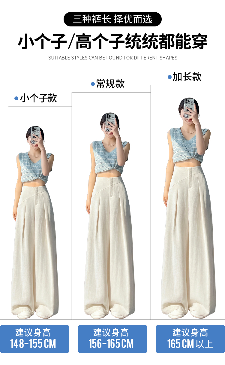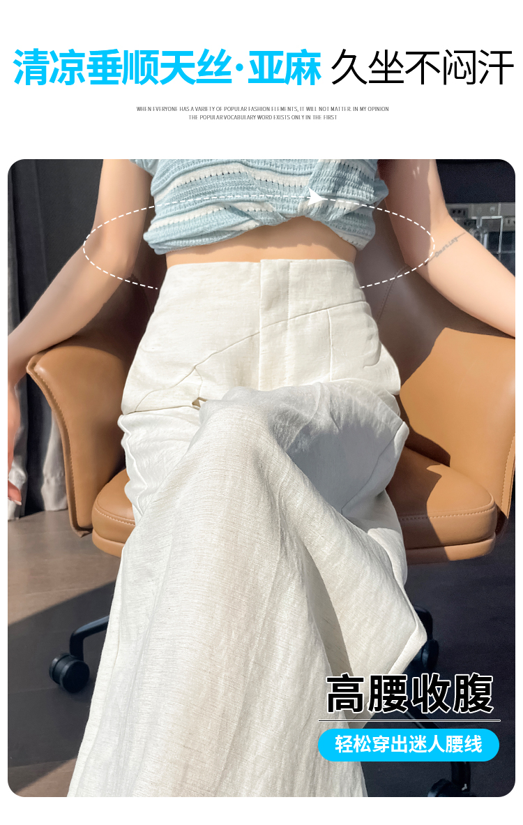아이스 실크 린넨 바지 넓은 다리 바지 여성용 여름 얇은 높은 허리 느슨한 슬리밍 좁은 캐주얼 긴 바지스토어 가기
