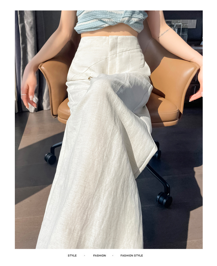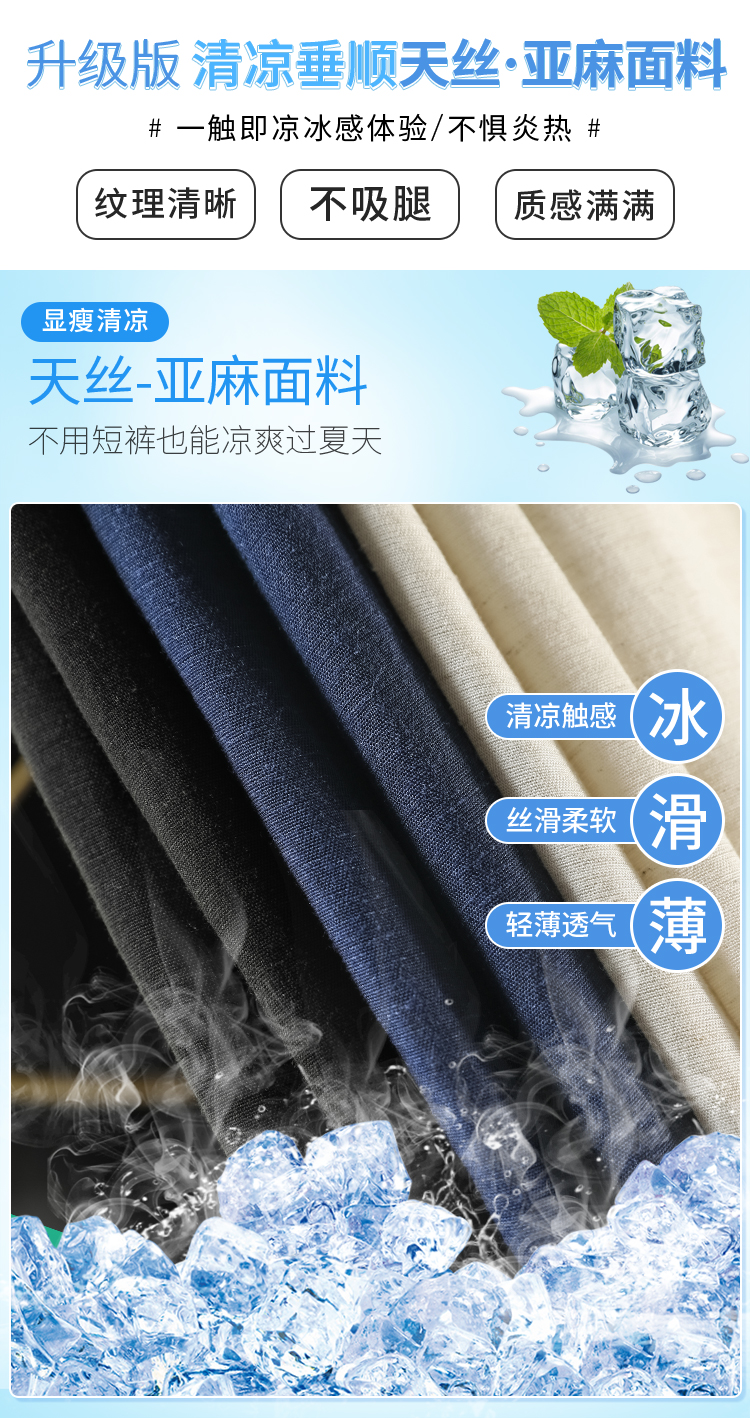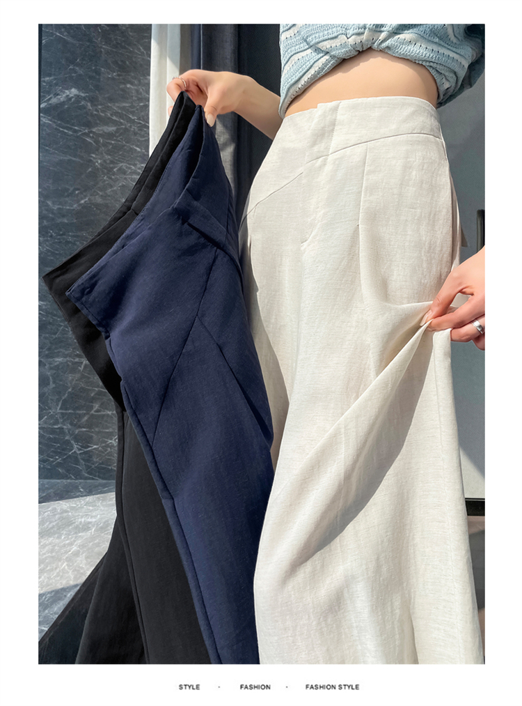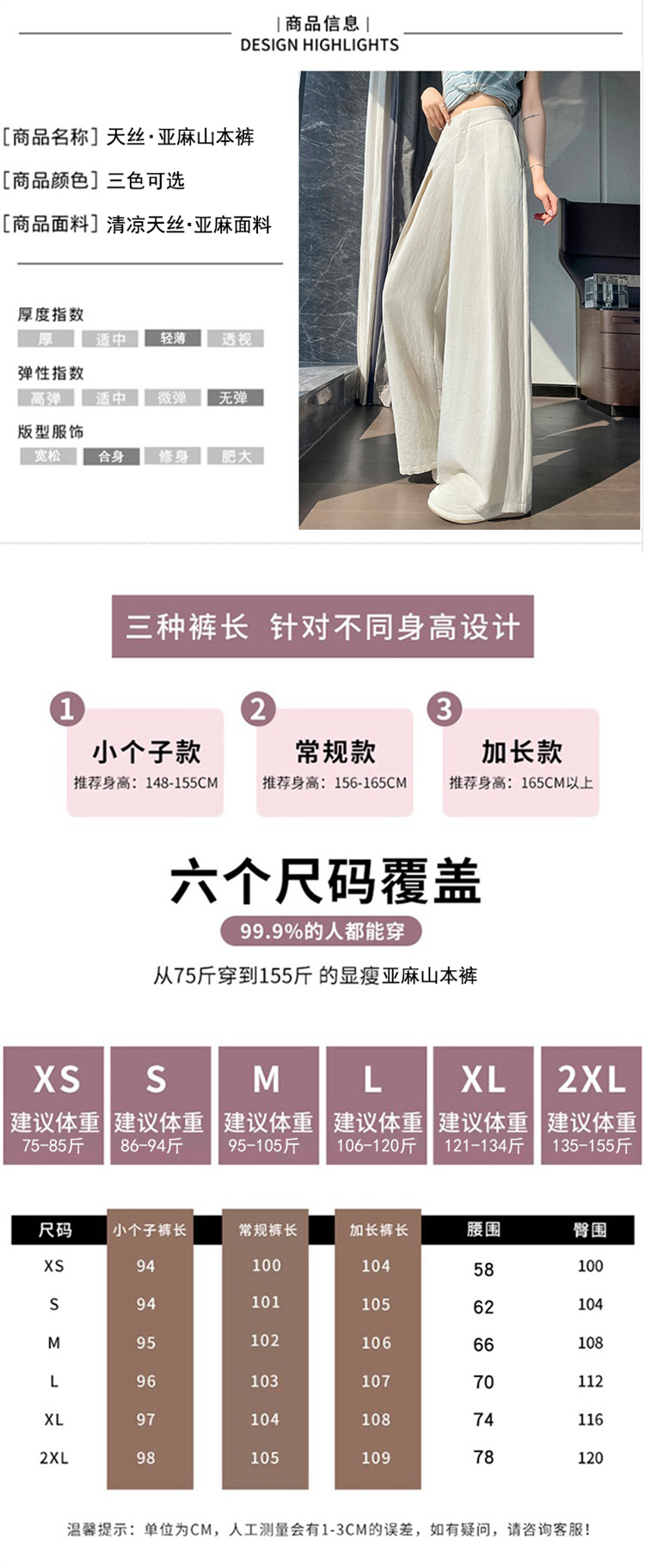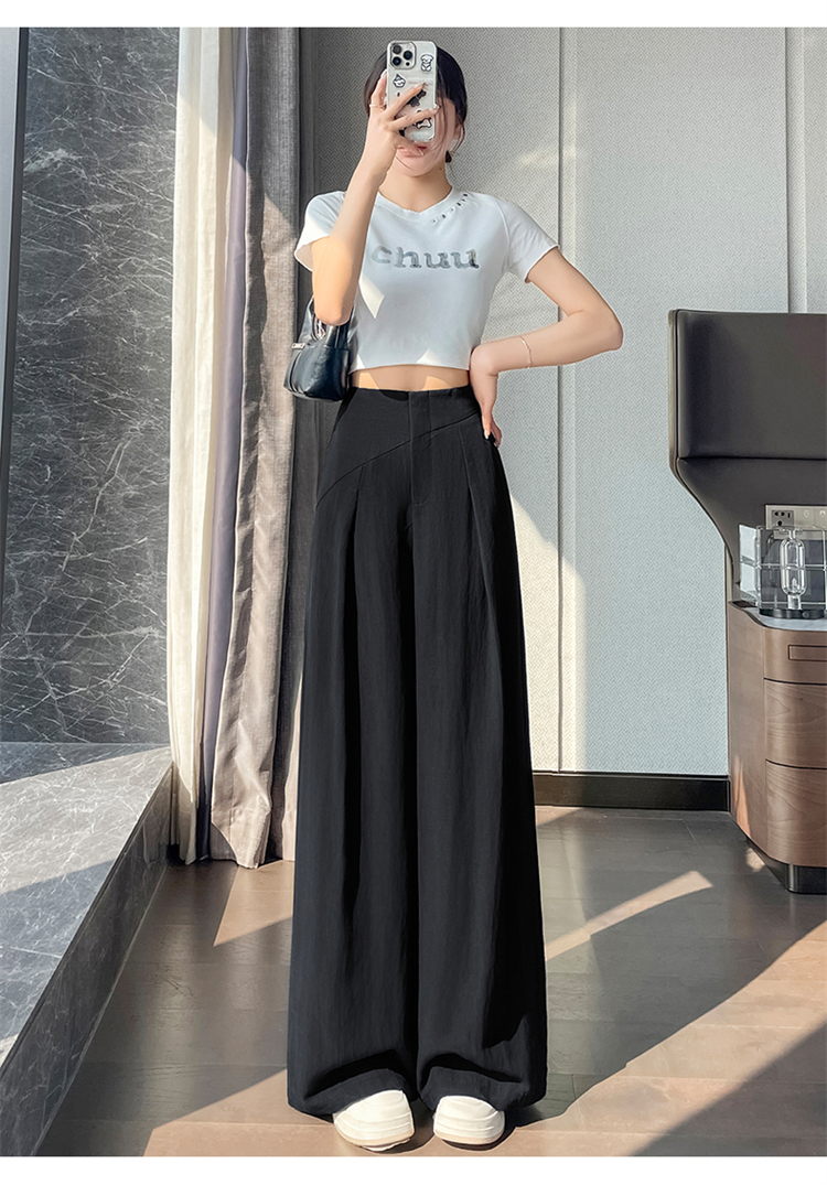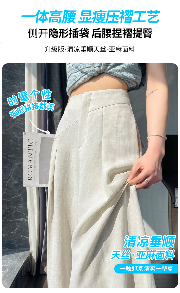 아이스 실크 린넨 바지 넓은 다리 바지 여성용 여름 얇은 높은 허리 느슨한 슬리밍 좁은 캐주얼 긴 바지스토어 가기