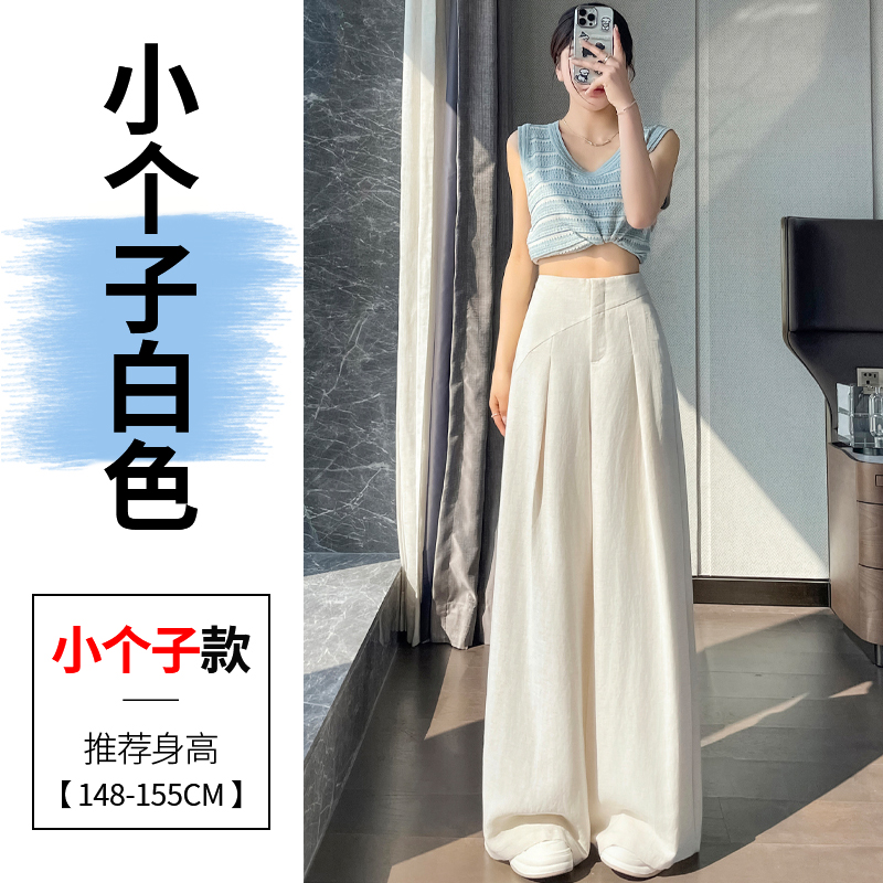 아이스 실크 린넨 바지 넓은 다리 바지 여성용 여름 얇은 높은 허리 느슨한 슬리밍 좁은 캐주얼 긴 바지