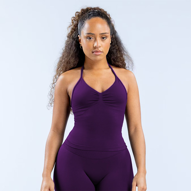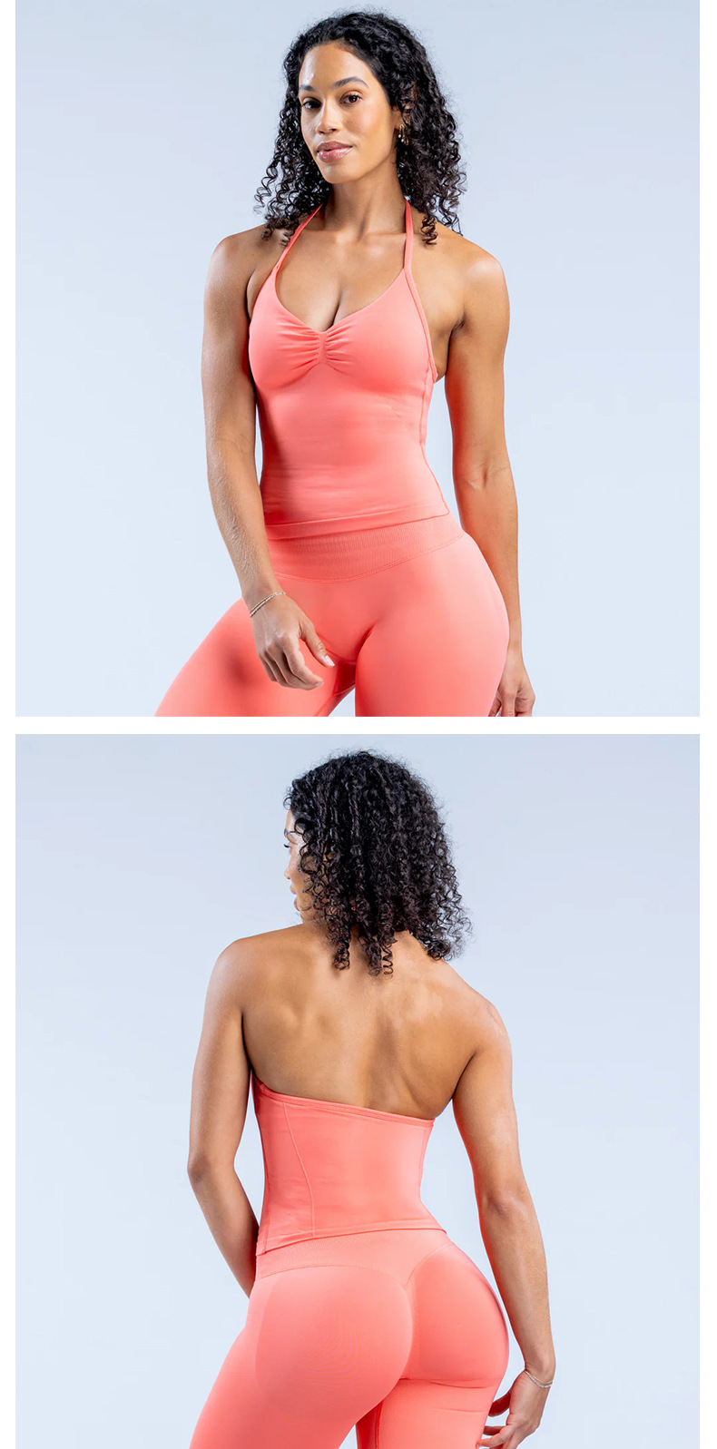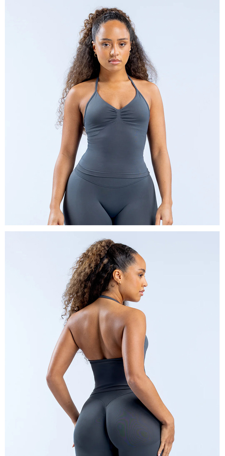 DFYNE 외부 착용을 위한 심리스 홀터넥 스포츠 브라, 여성용 고탄성 피트니스 탑, 가슴 패드, 올인원 백 요가 조끼
