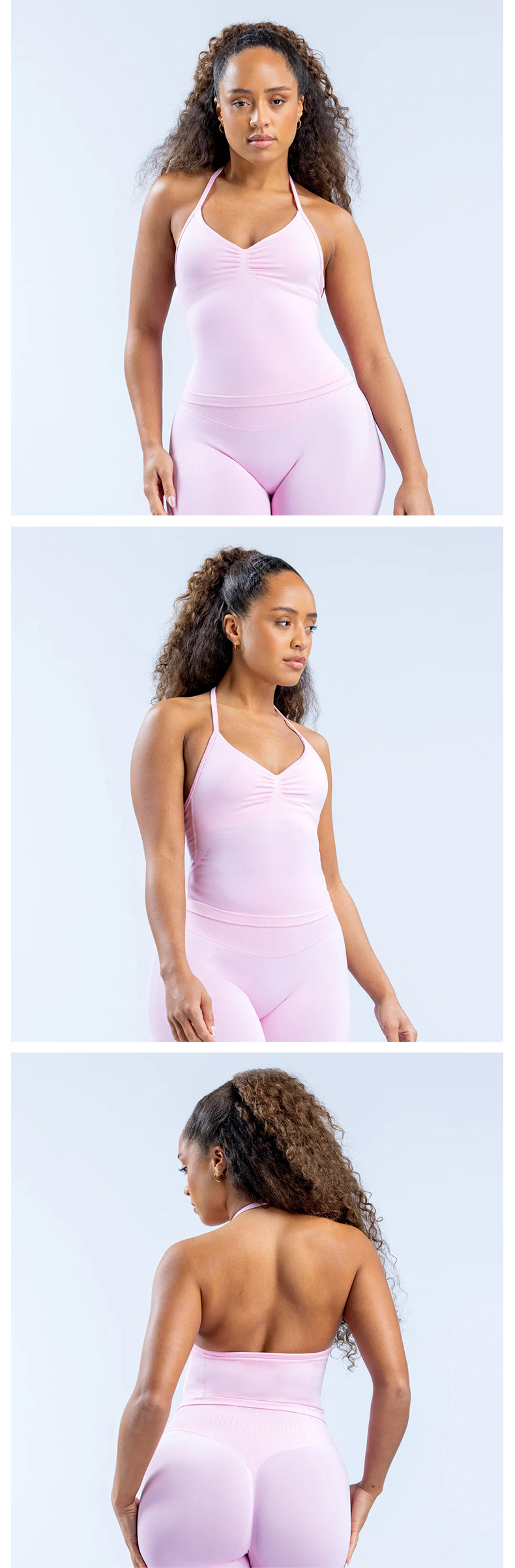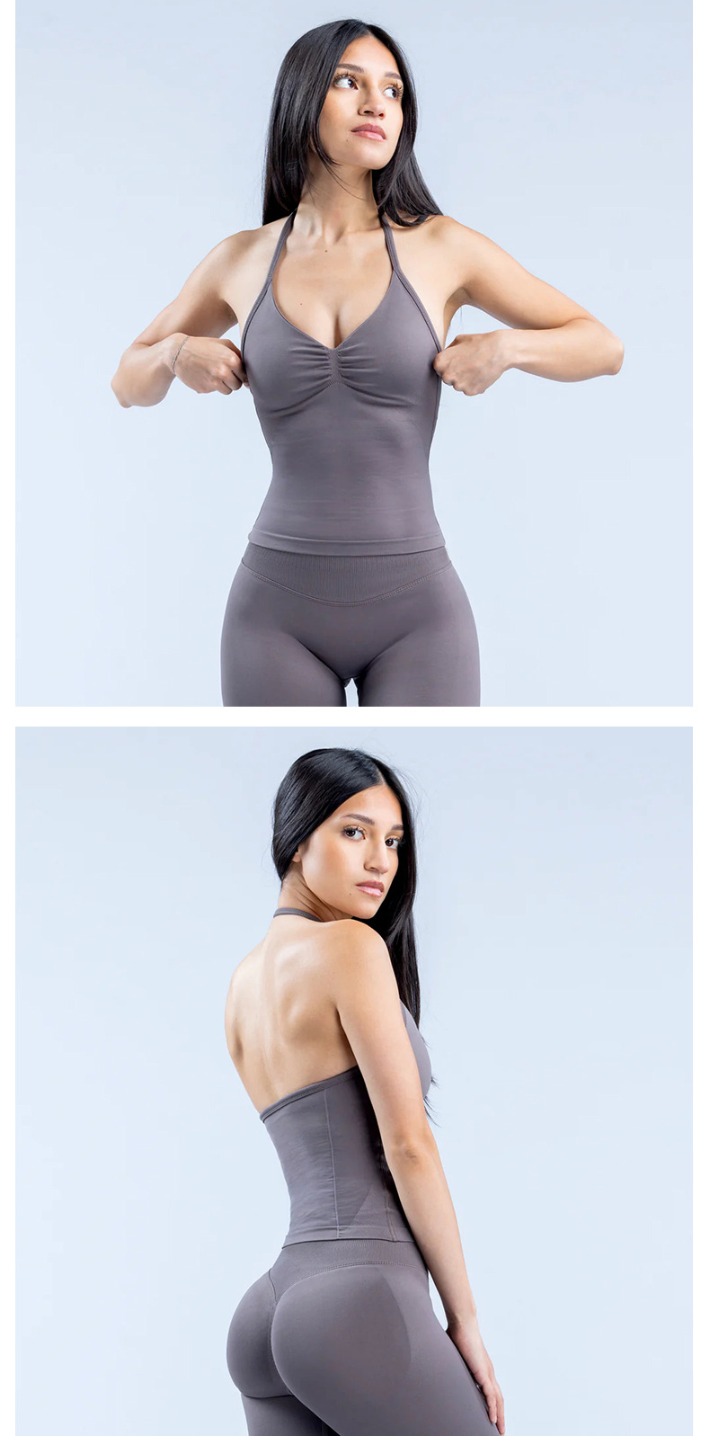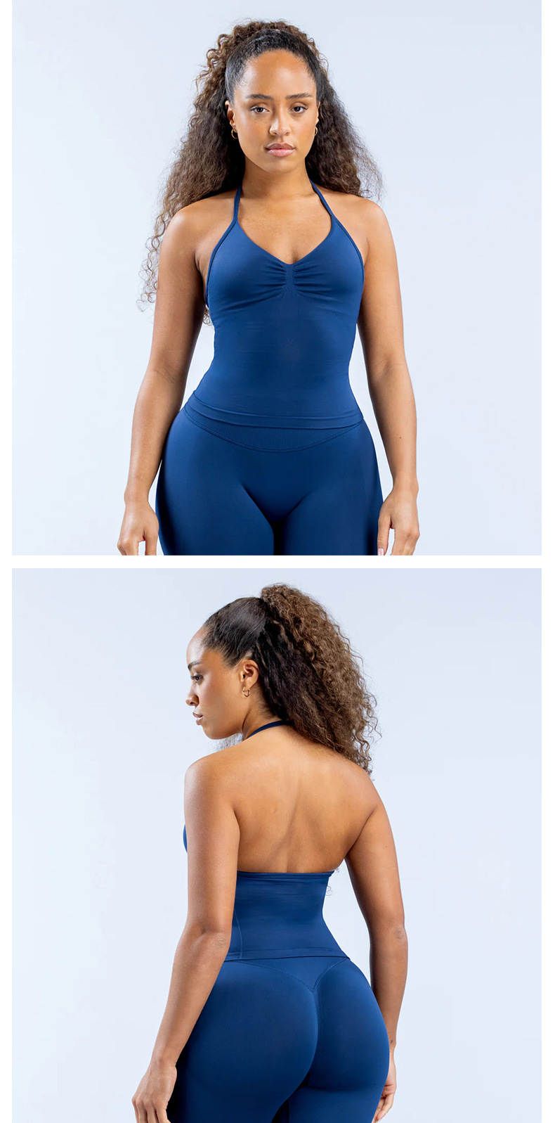 DFYNE 외부 착용을 위한 심리스 홀터넥 스포츠 브라, 여성용 고탄성 피트니스 탑, 가슴 패드, 올인원 백 요가 조끼