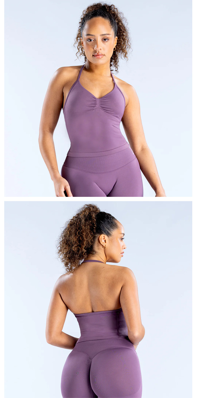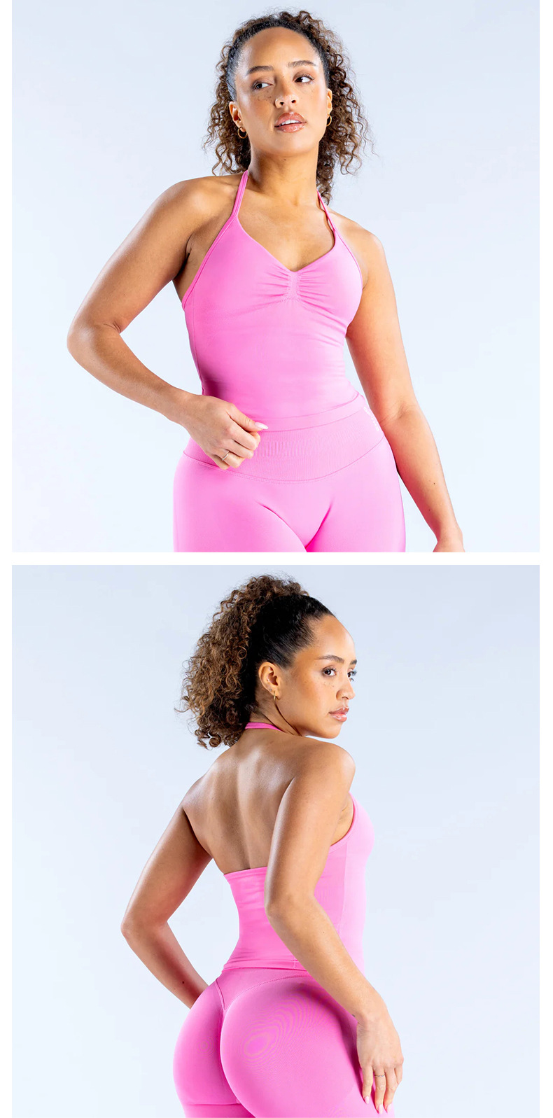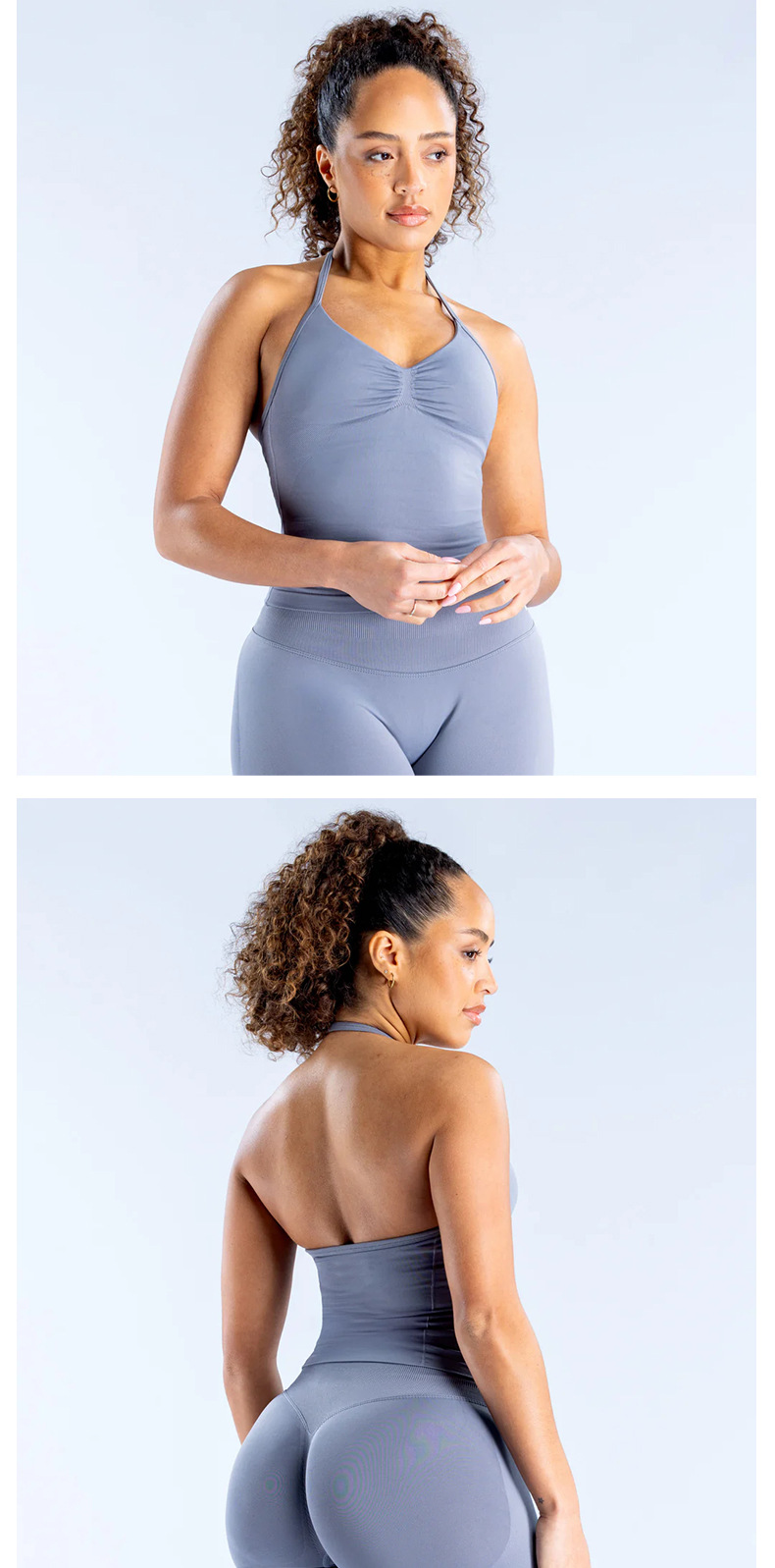 DFYNE 외부 착용을 위한 심리스 홀터넥 스포츠 브라, 여성용 고탄성 피트니스 탑, 가슴 패드, 올인원 백 요가 조끼스토어 가기