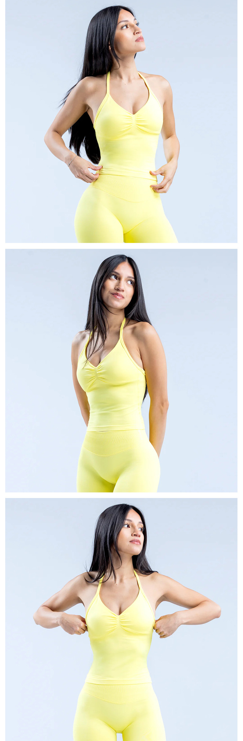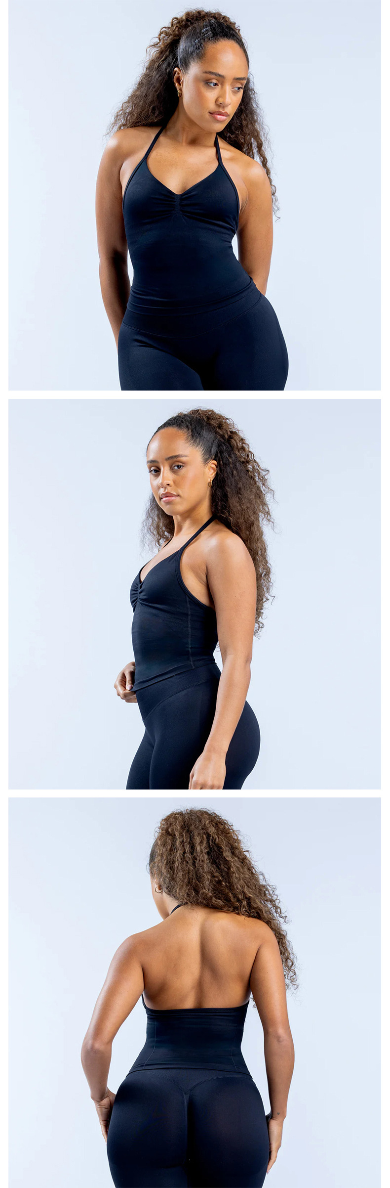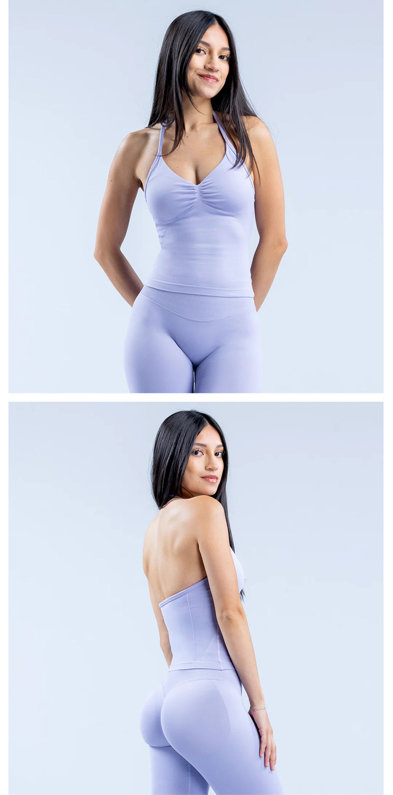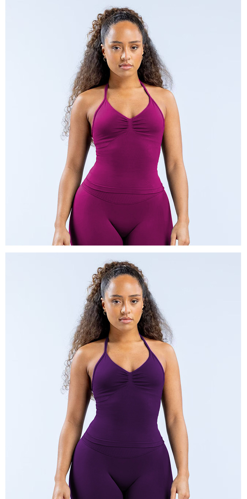 DFYNE 외부 착용을 위한 심리스 홀터넥 스포츠 브라, 여성용 고탄성 피트니스 탑, 가슴 패드, 올인원 백 요가 조끼스토어 가기