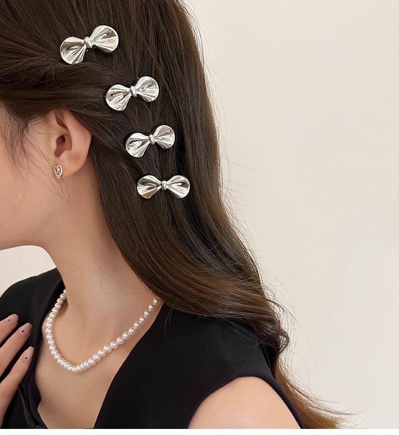 메탈릭 실버 활 헤어핀 달콤한 쿨 소녀 덕빌 클립 깨진 헤어 뱅이 클립 사이드 클립 헤어핀 헤어 액세서리 헤드웨어스토어 가기