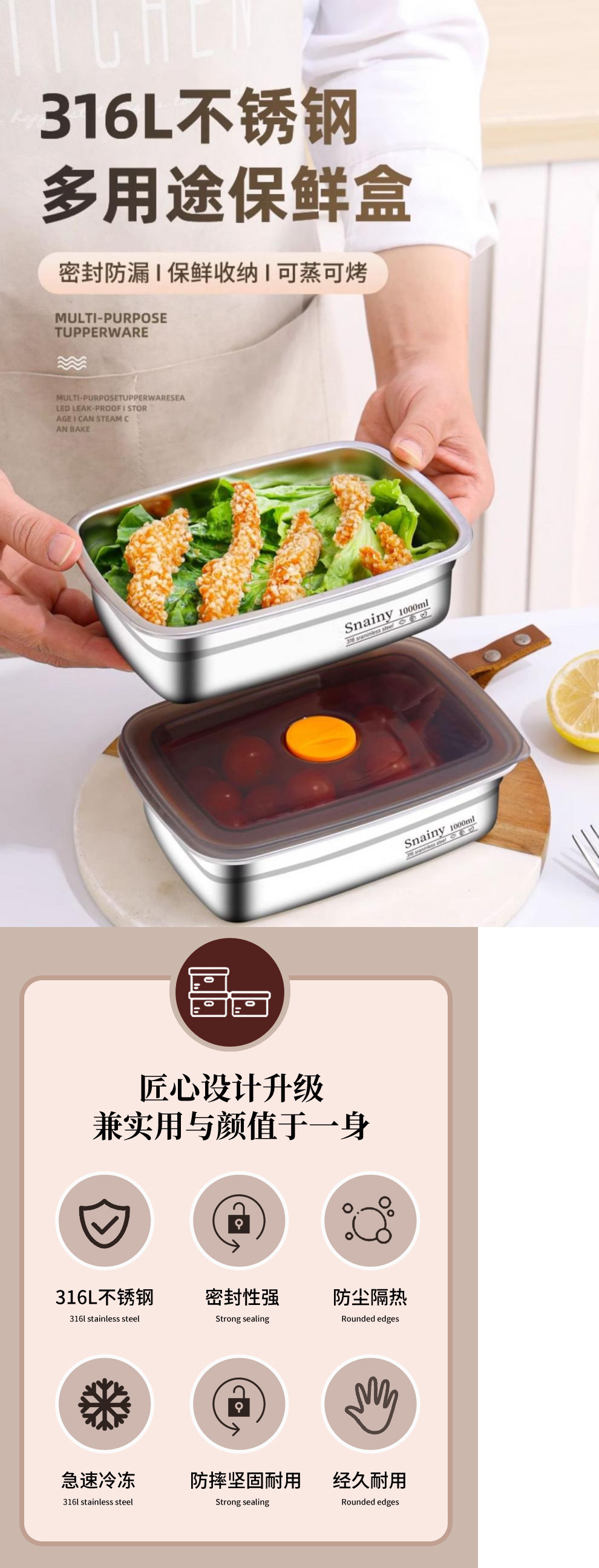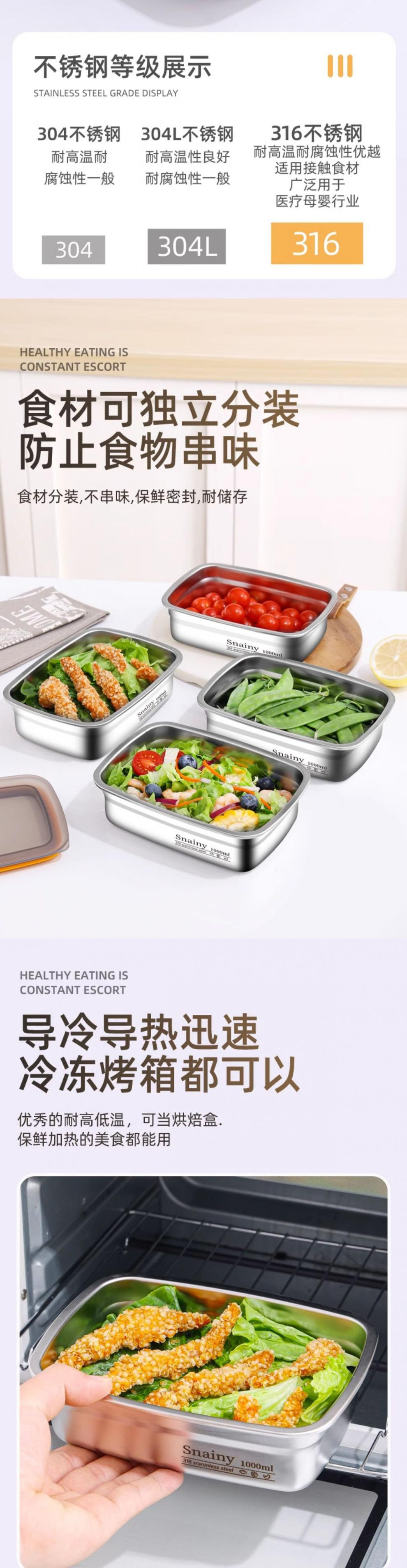 316 스테인레스 스틸 크리스퍼 식품 등급 도시락 도시락 냉장고 특수 밀봉 상자 뚜껑 상자 냉동고 상자스토어 가기