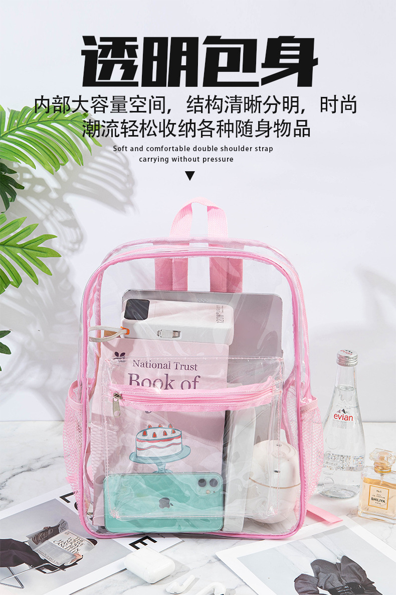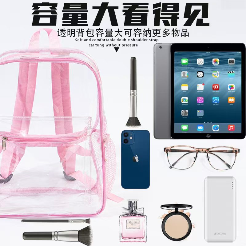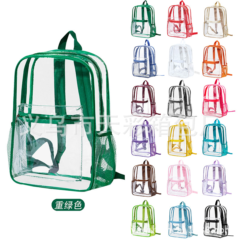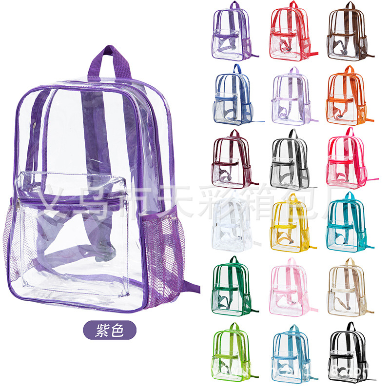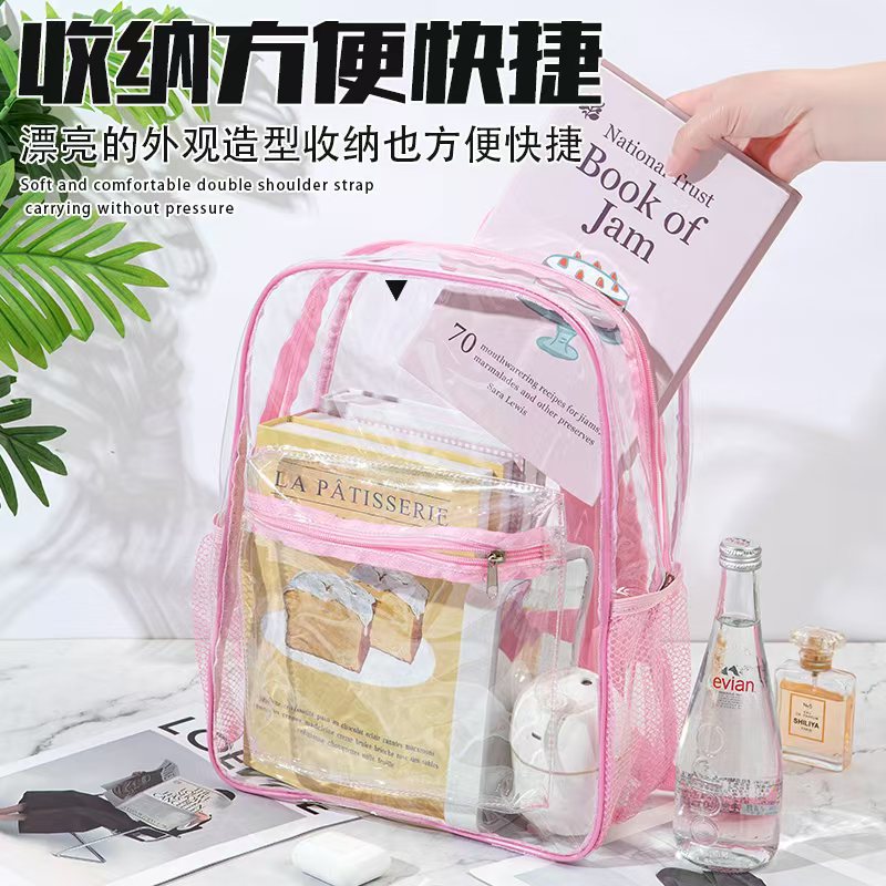 국경을 넘는 인기 방수 백팩 대용량 여행용 컴퓨터 화장품 수납 가방 PVC 투명 백팩 도매스토어 가기