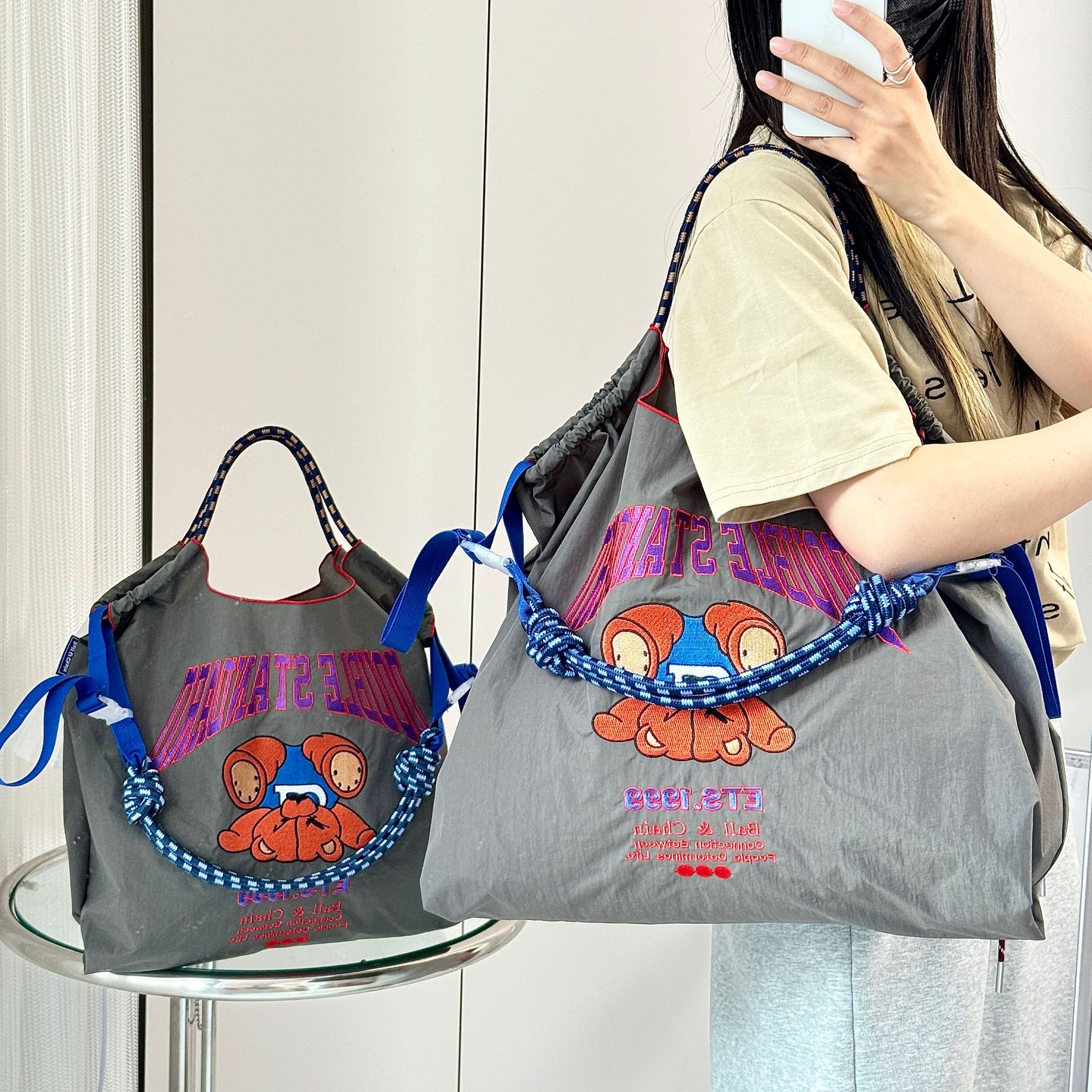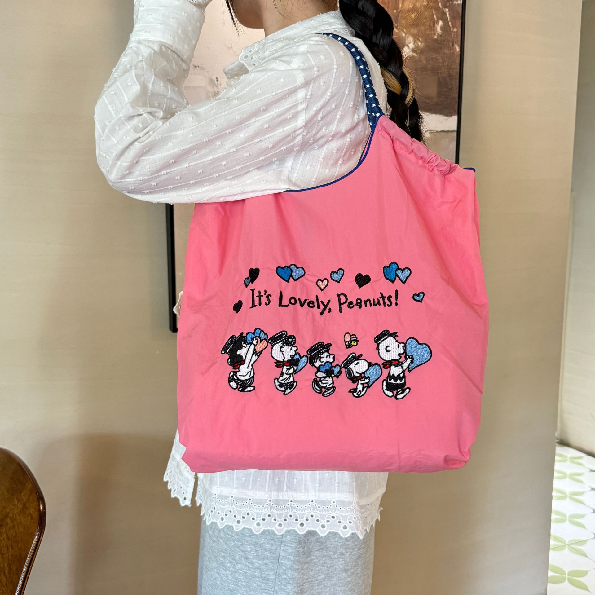 여름 새로운 캔버스 가방 일본 맞춤형 볼 체인 에코 가방 맞춤형 쇼핑백 여성 숄더 백