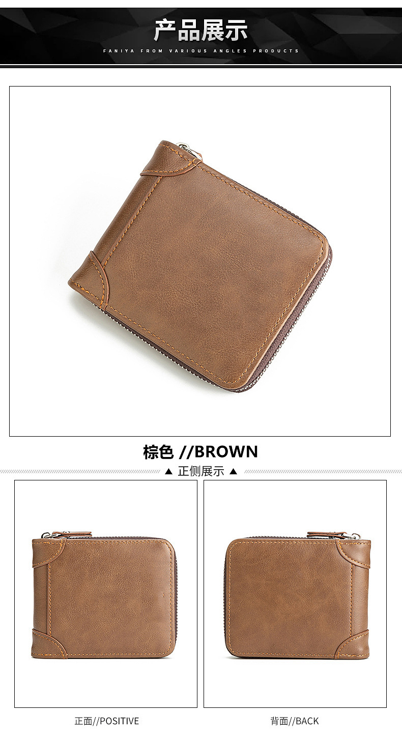 남성 패션 짧은 휴대용 지퍼 다기능 가죽 대용량 멀티 카드 슬롯 동전 가방 지갑스토어 가기