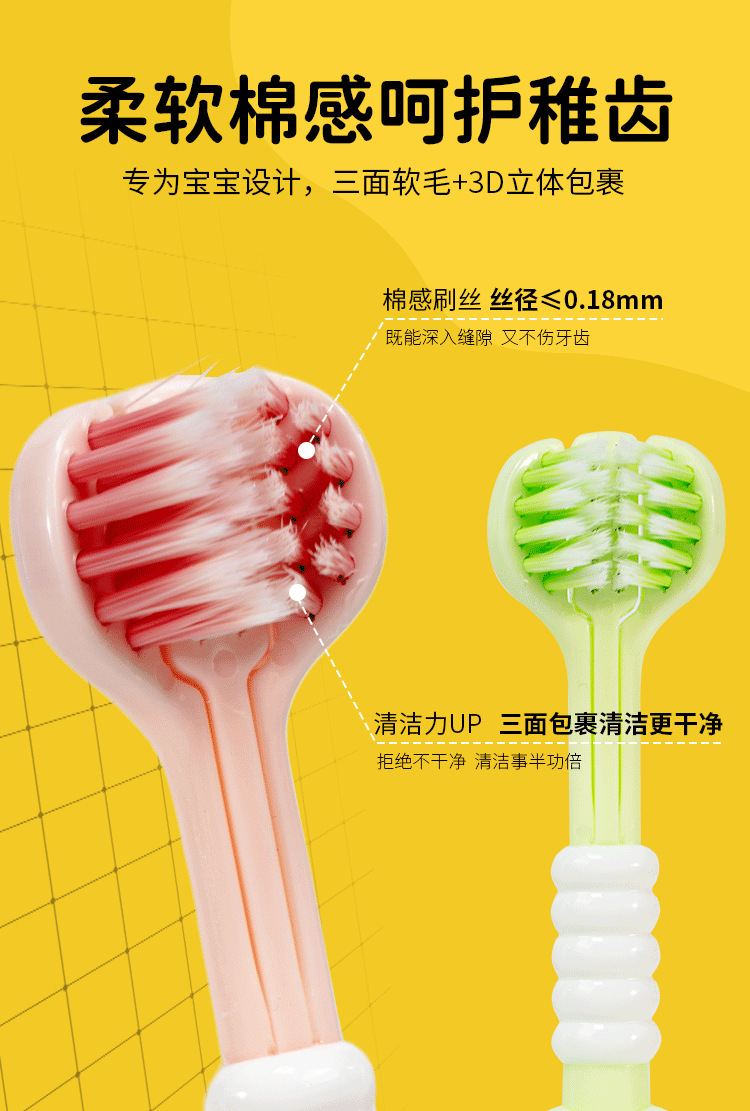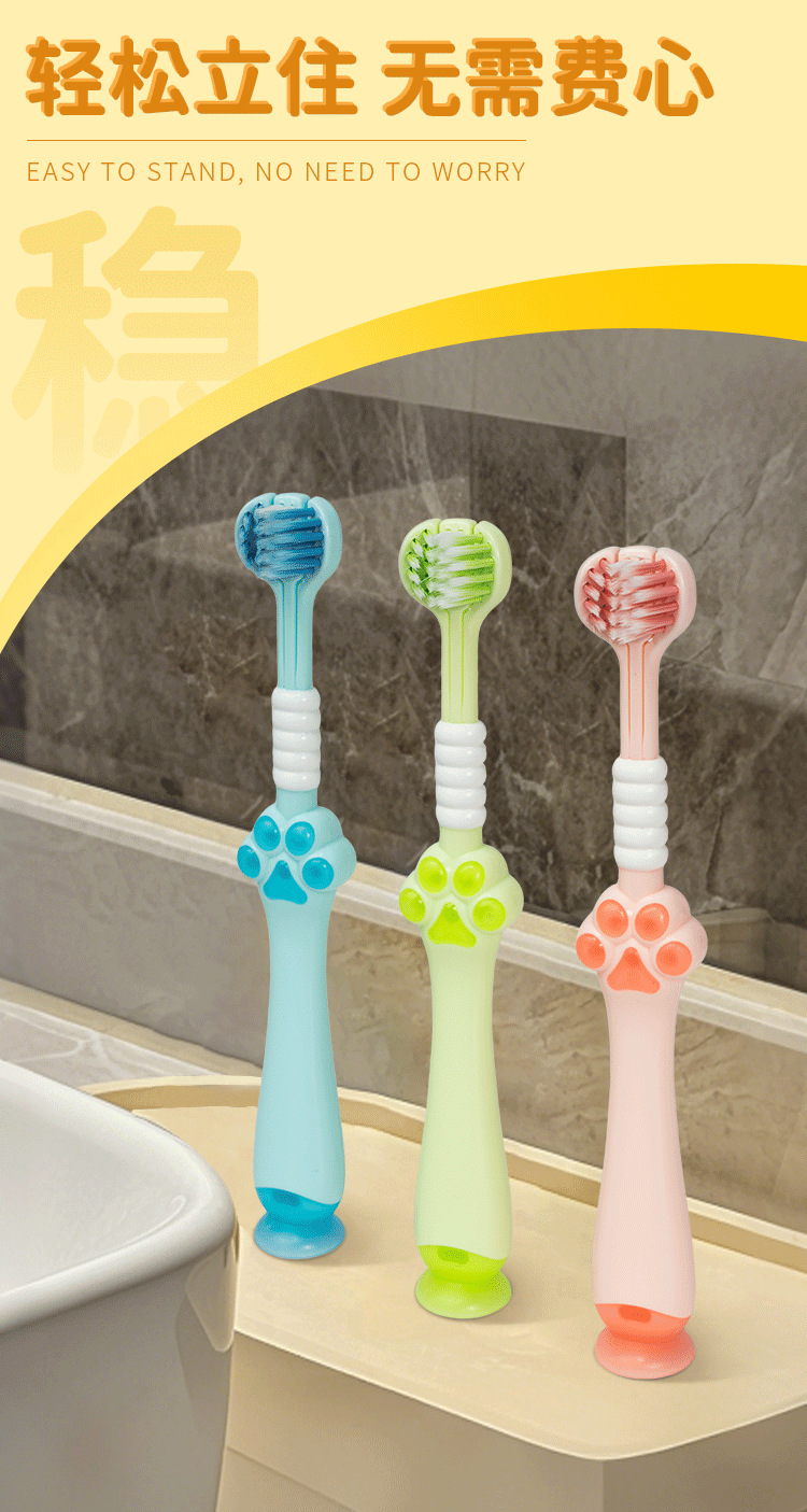 • 핫한 아이템 - 삼면 고양이발톱 어린이 칫솔 (4가지 색상 랜덤)