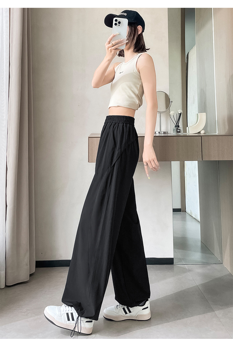 빠른 건조 와이드 레그 스포츠 바지 여자 2025 여름 얇은 스포츠 등산 바지 선스크린 작업복 스트레이트 캐주얼 바지스토어 가기
