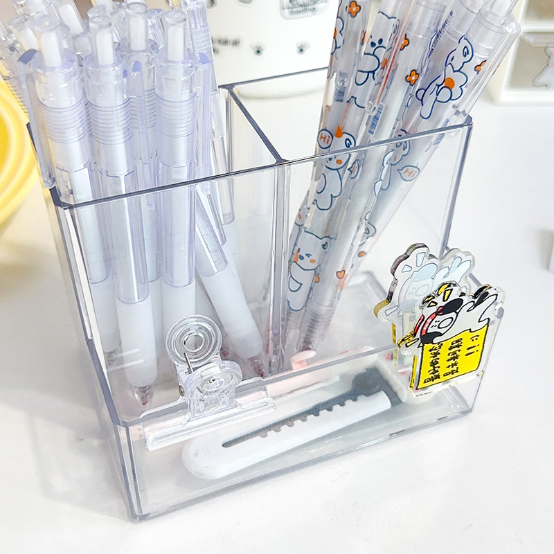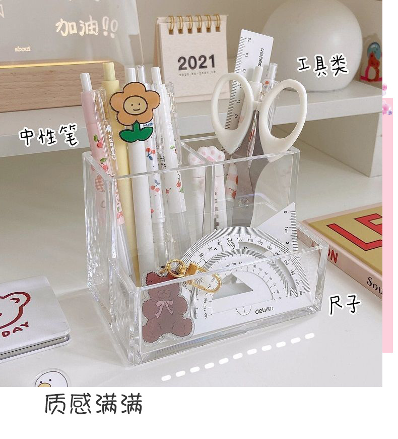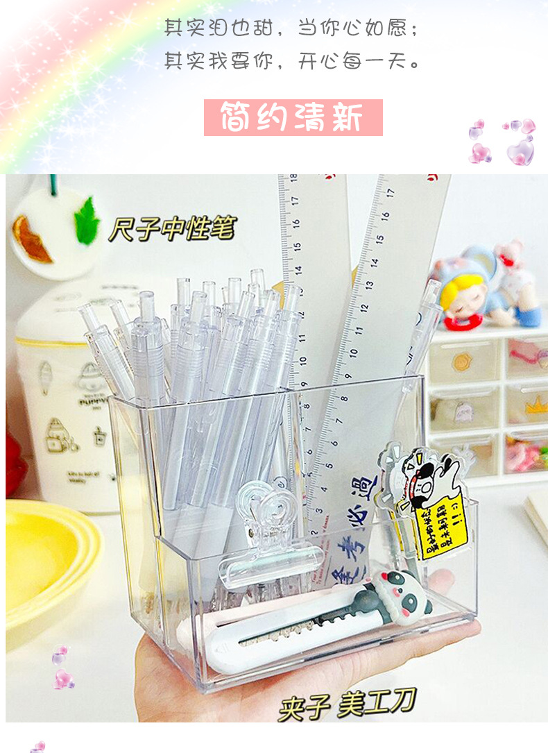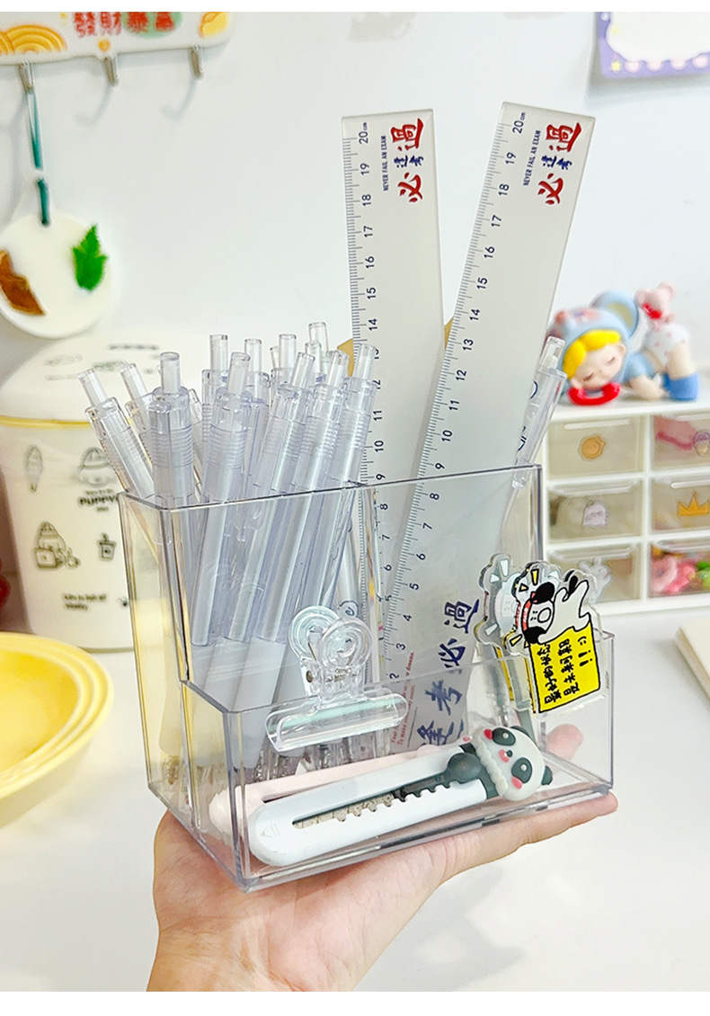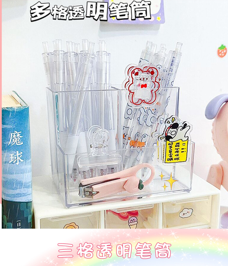 透明三格笔筒办公室桌面收纳盒简约风格学生文具收纳储物盒置物架스토어 가기