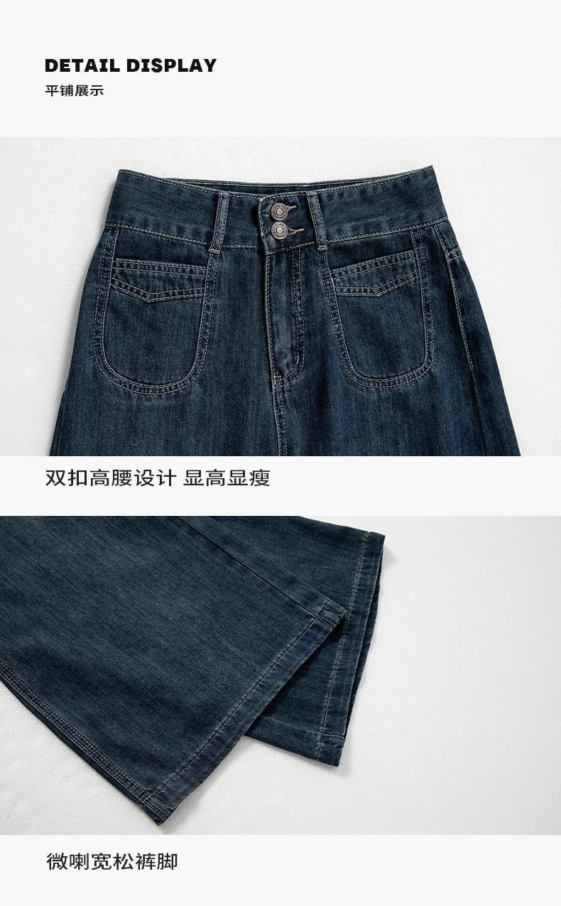 여름 여성을 위한 복고풍 편안한 캐주얼 와이드 레그 청바지 새로운 디자인 하이 웨이스트 루즈 슬리밍 다용도 바닥 길이 바지스토어 가기