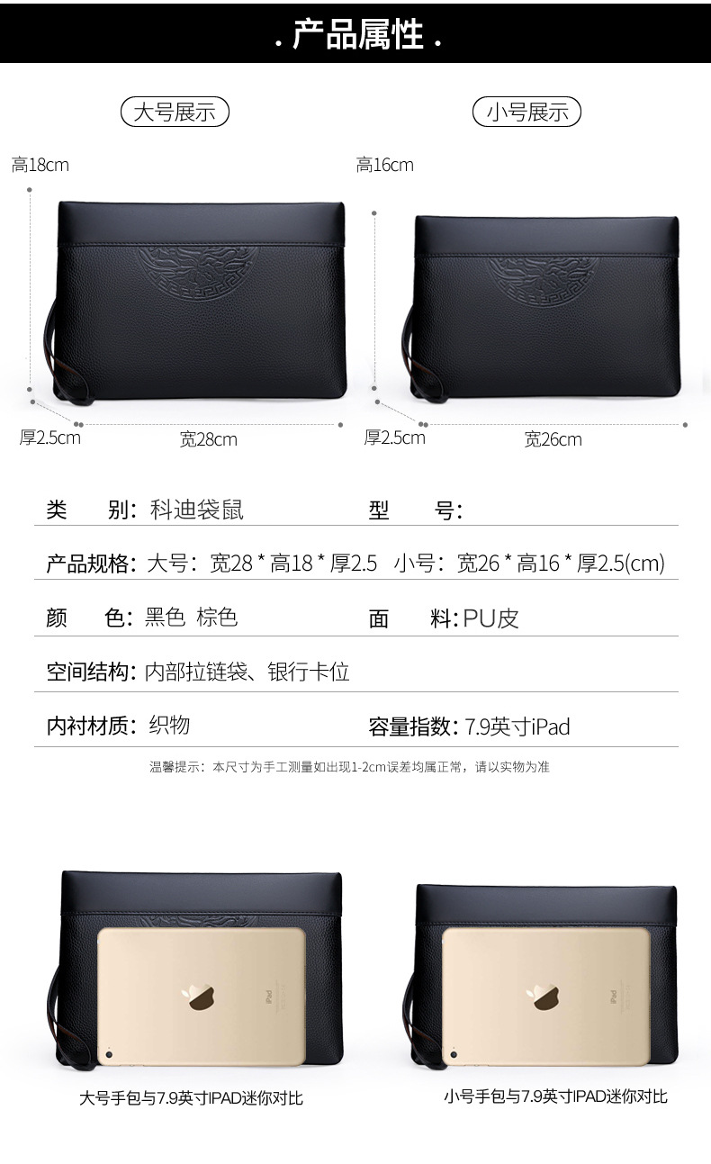 남성 신입 럭셔리 정품 핸드백 캐주얼 봉투 대용량 클러치 백 비즈니스 남성 언더암 클램프 백스토어 가기