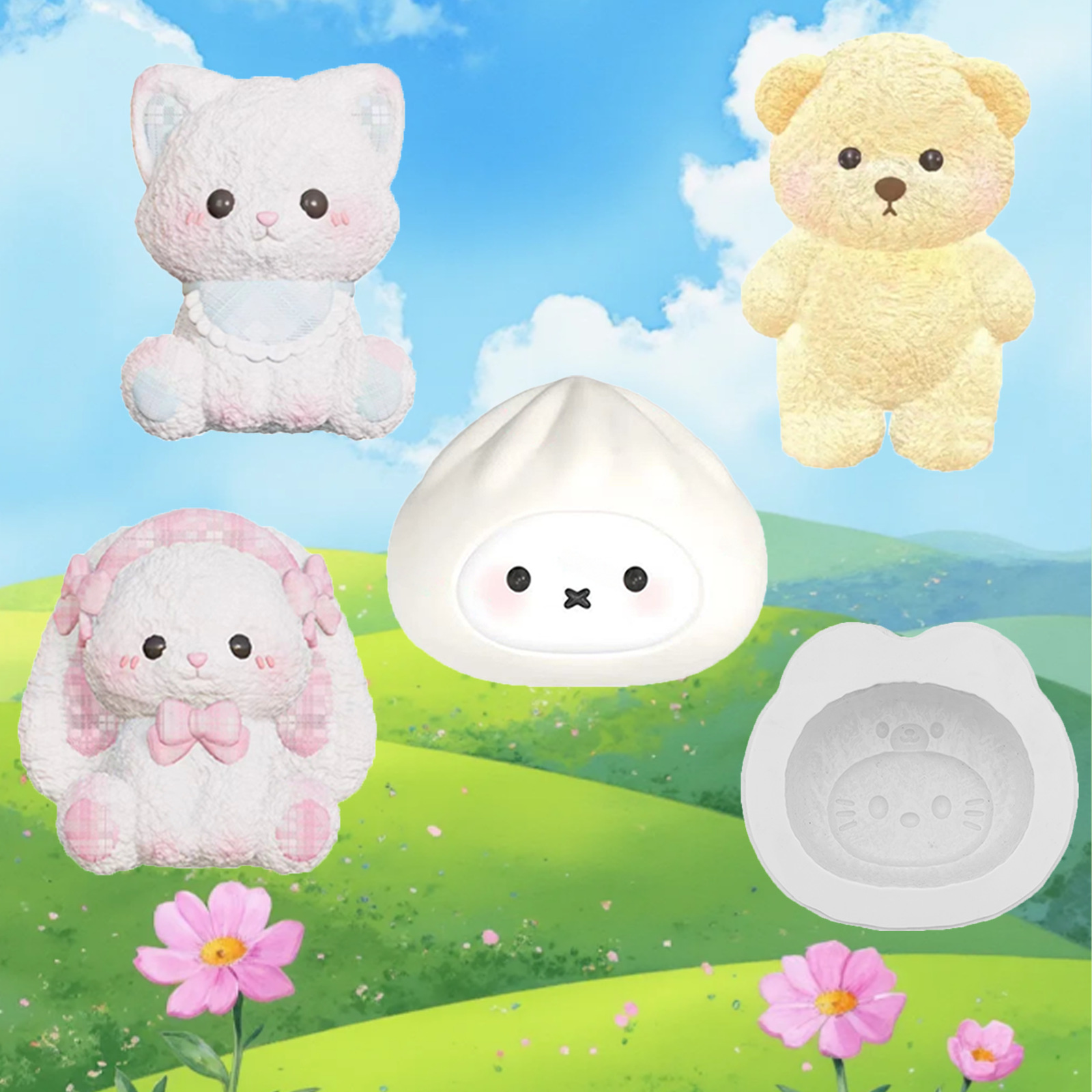 만화 곰 핀치 금형 DIY 조수 놀이 인형 감압 핀치 음악 창조적 인 석고 식품 등급 실리콘 금형스토어 가기