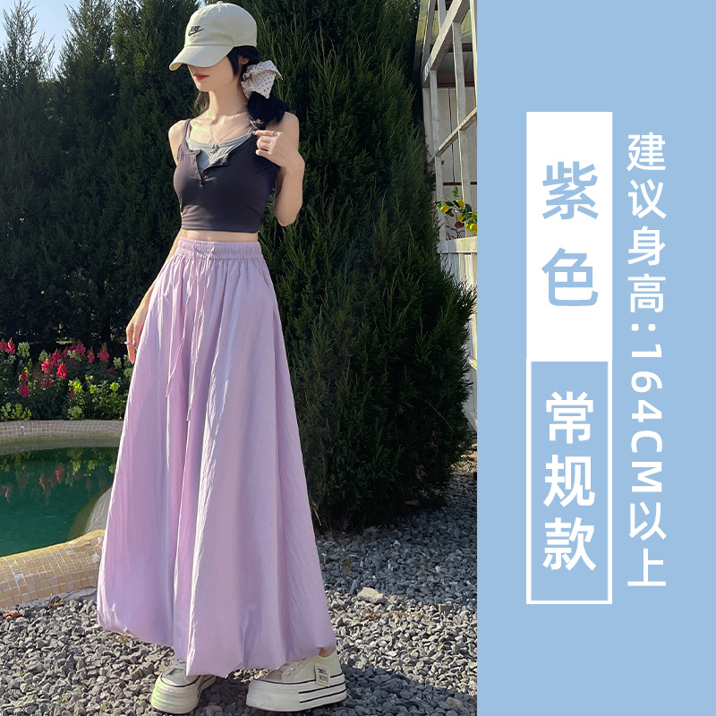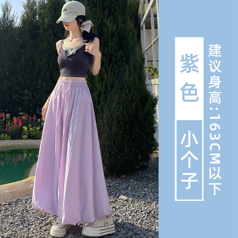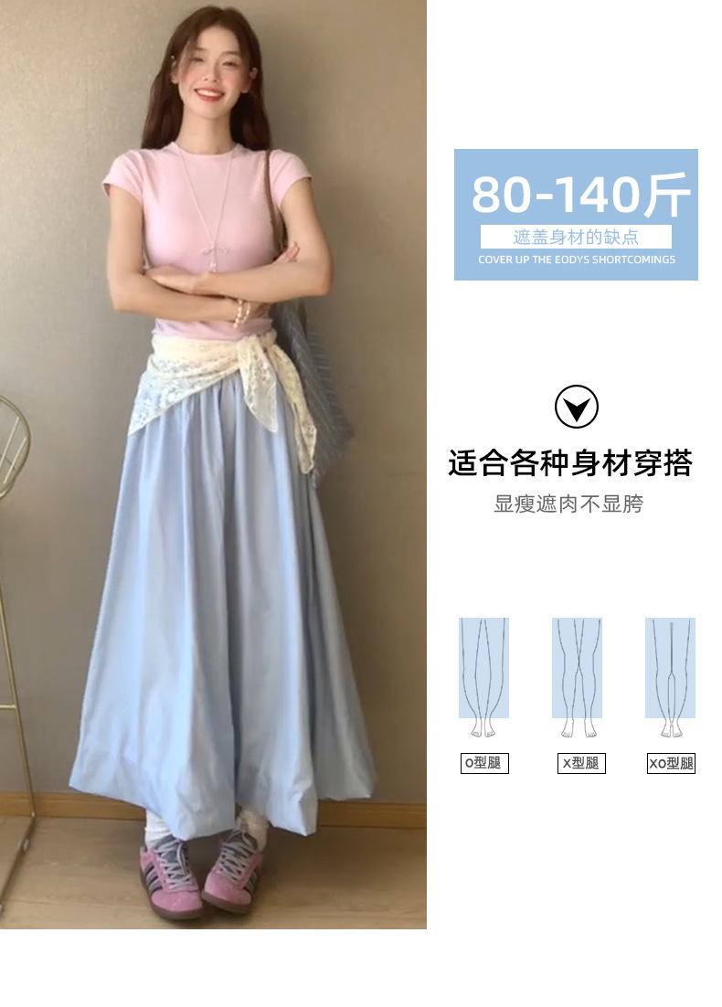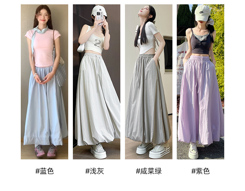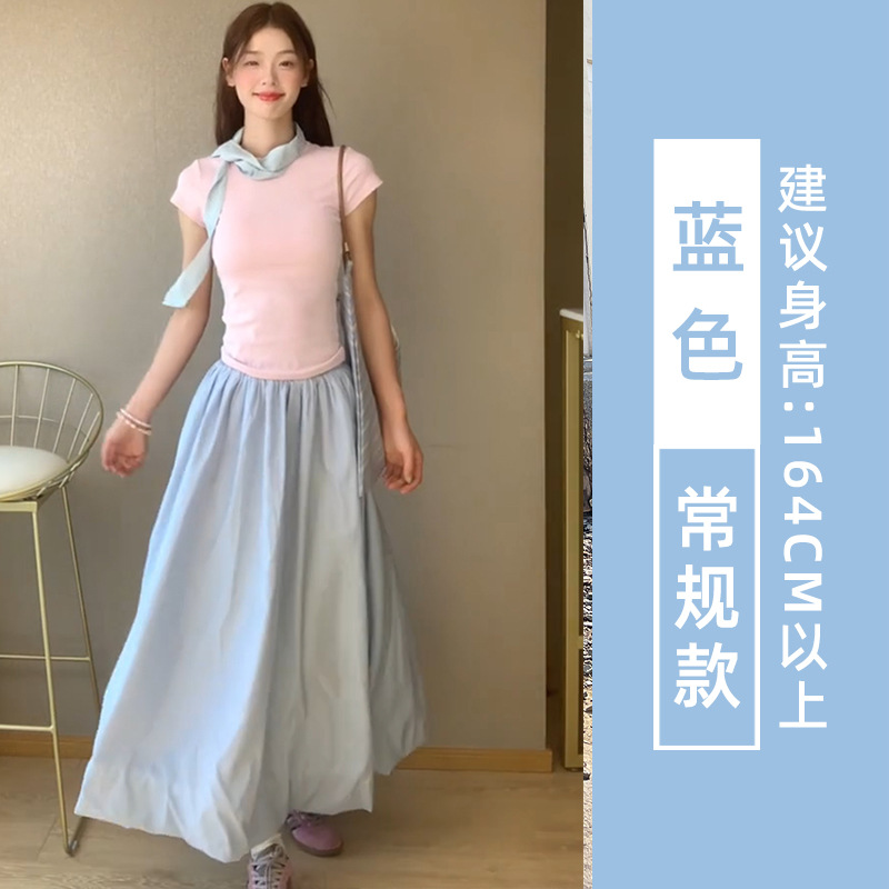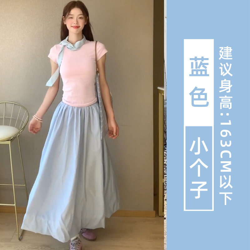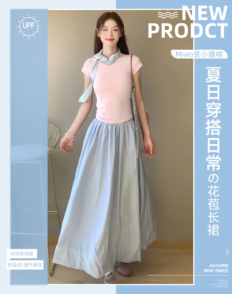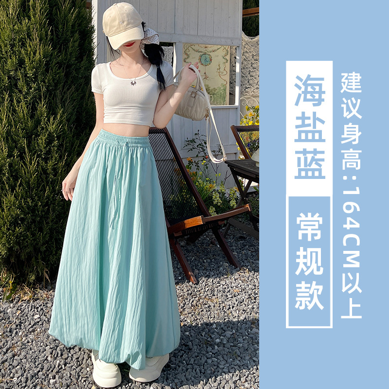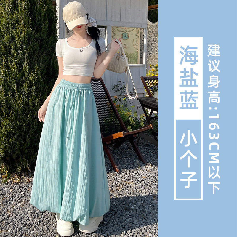 블루 플라워 버드 스커트 여성용 여름 얇은 2025 새로운 스타일 부드러운 높은 허리 A 라인 슬림 룩 아이스 실크 랜턴 스커트스토어 가기