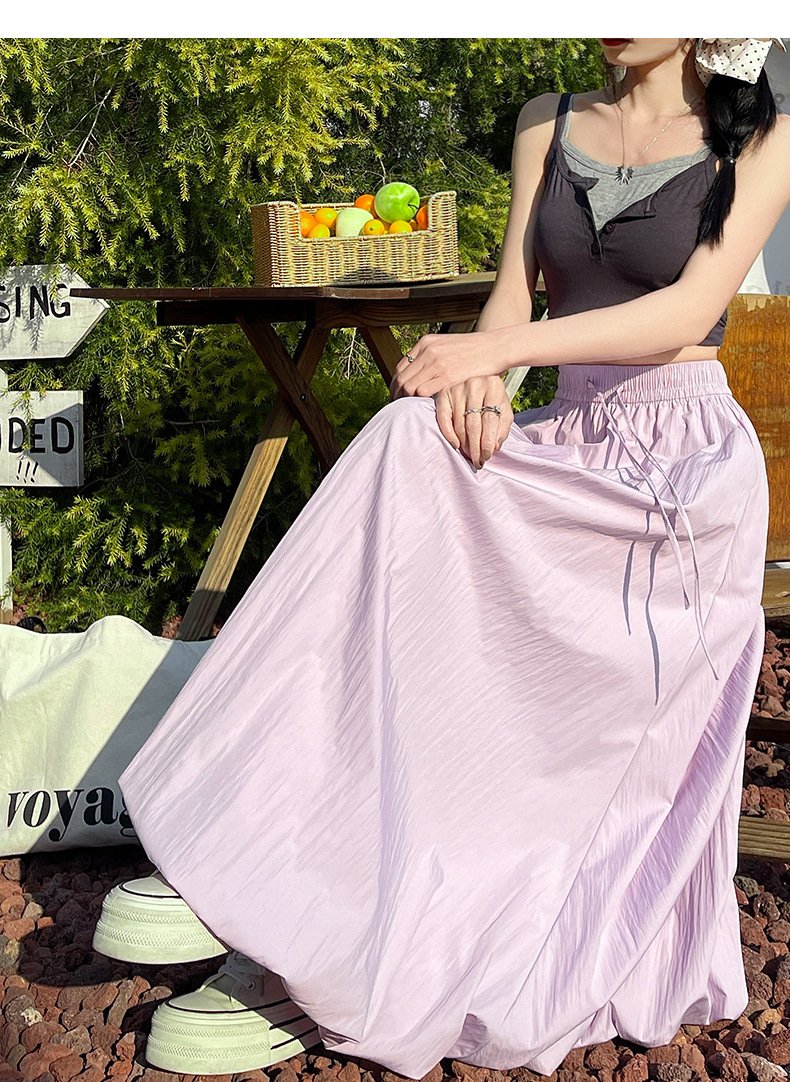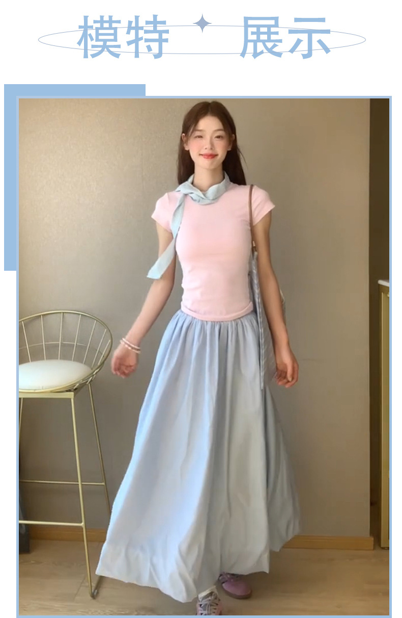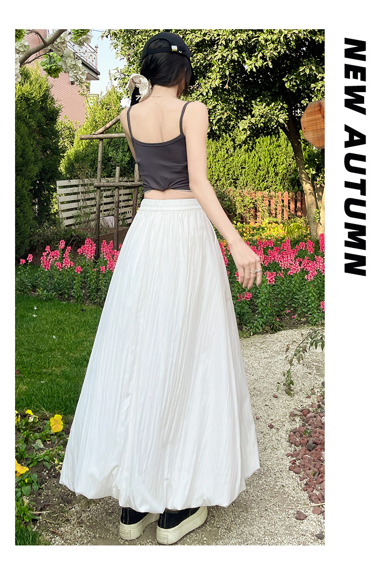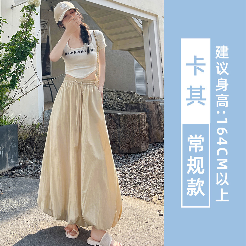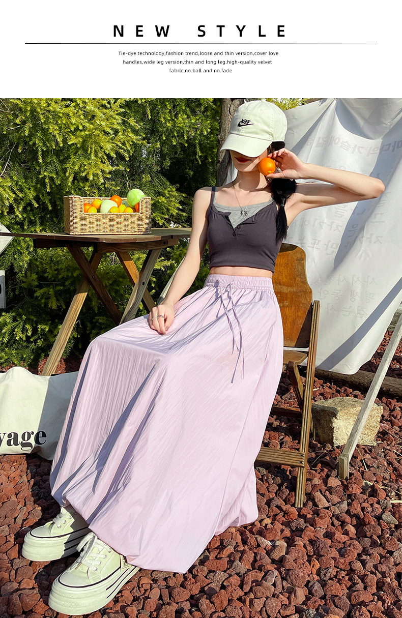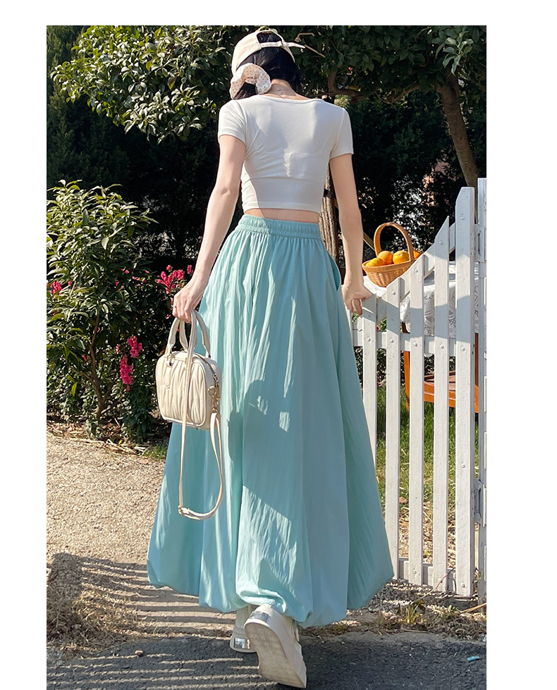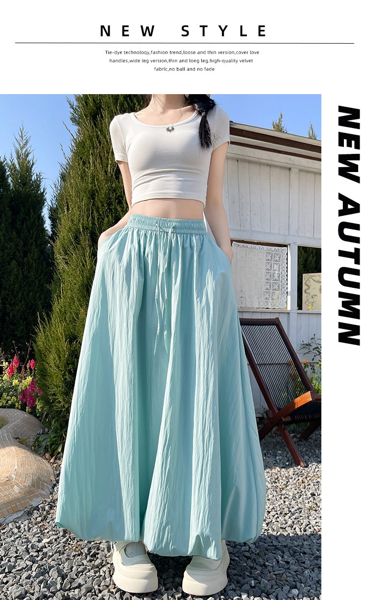 블루 플라워 버드 스커트 여성용 여름 얇은 2025 새로운 스타일 부드러운 높은 허리 A 라인 슬림 룩 아이스 실크 랜턴 스커트스토어 가기