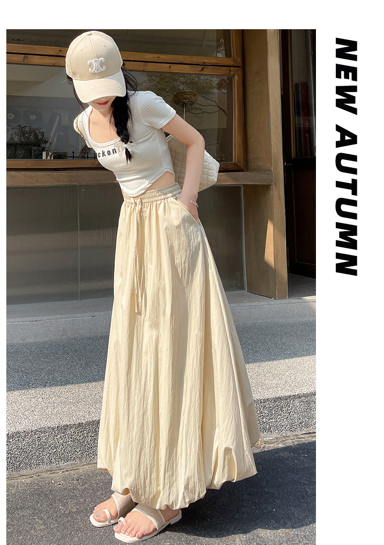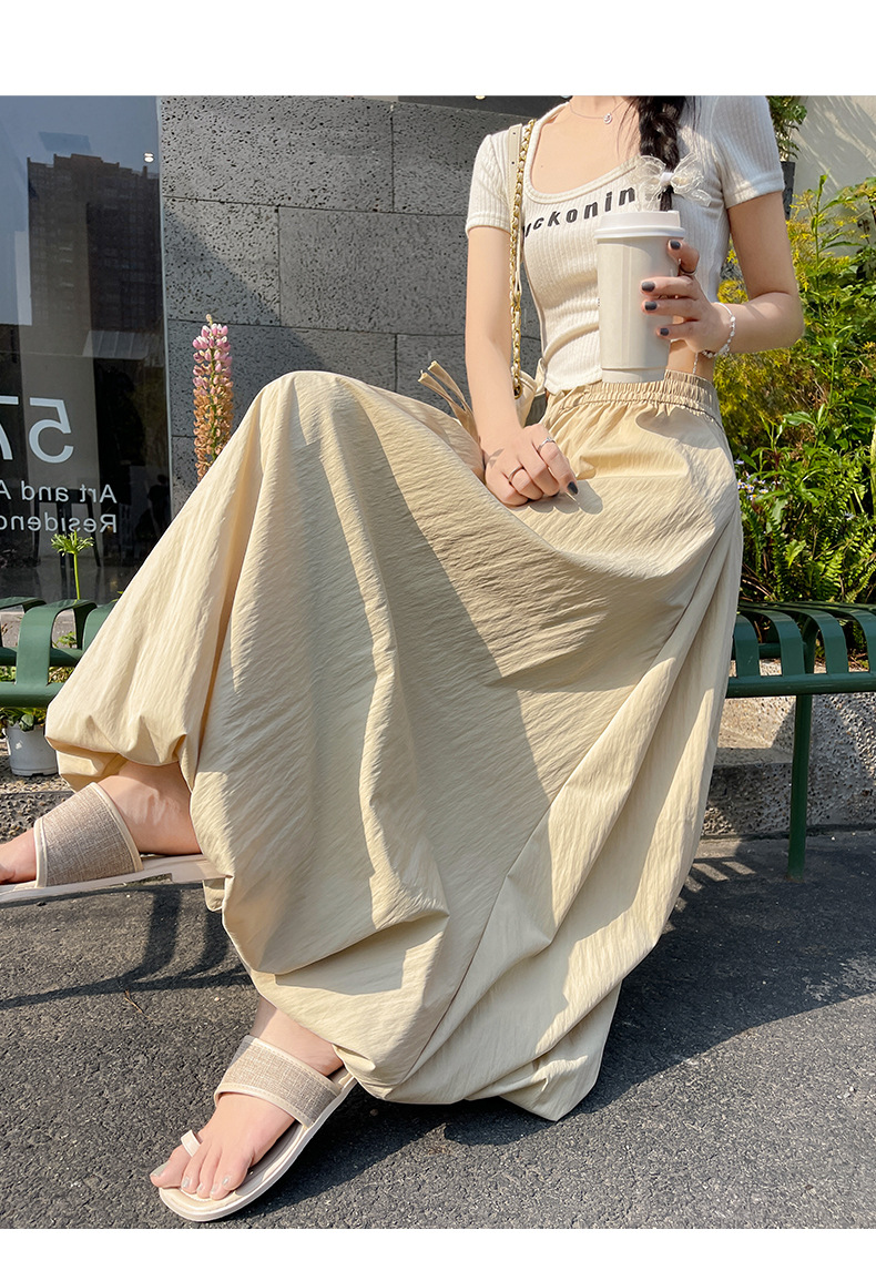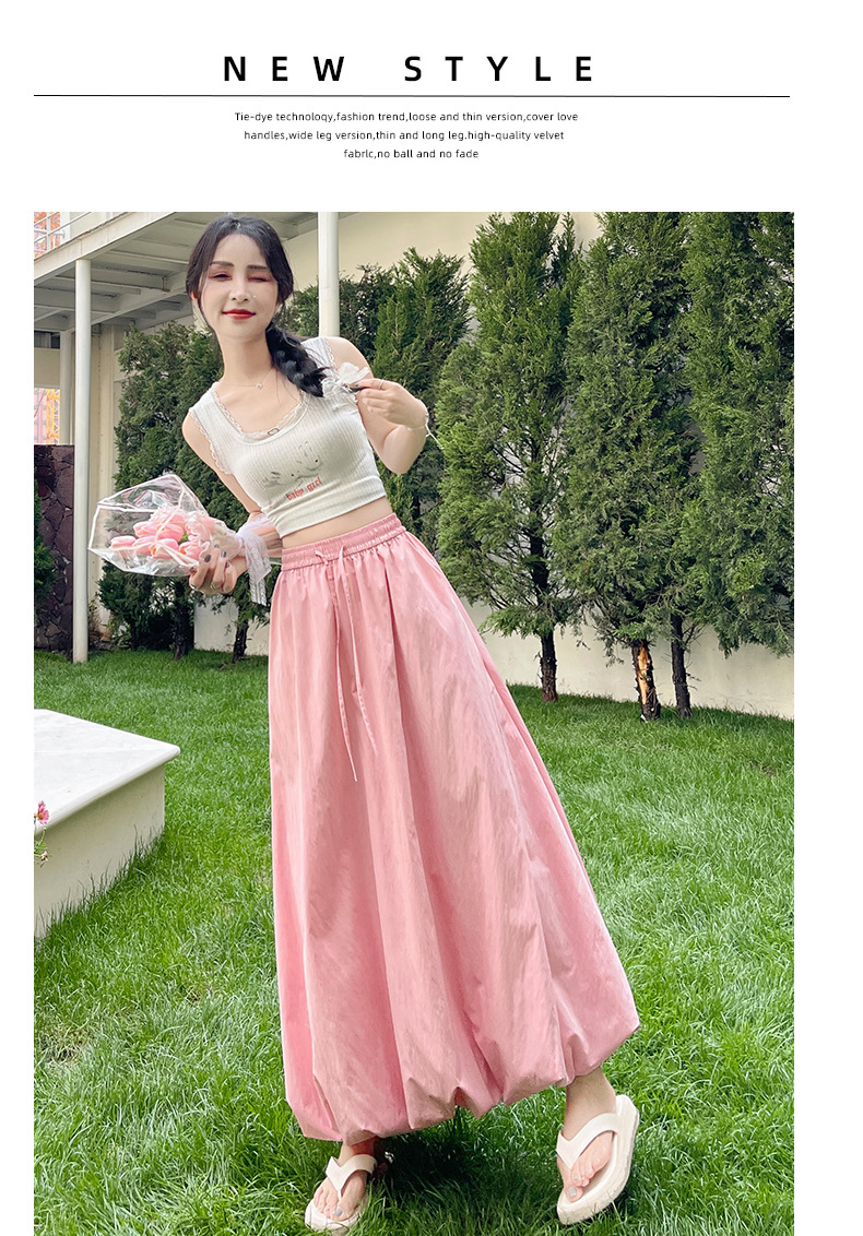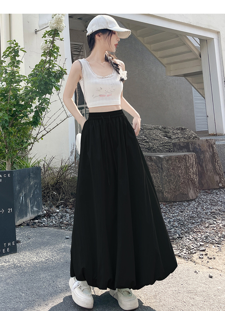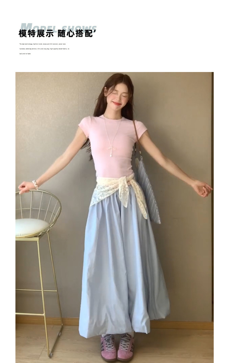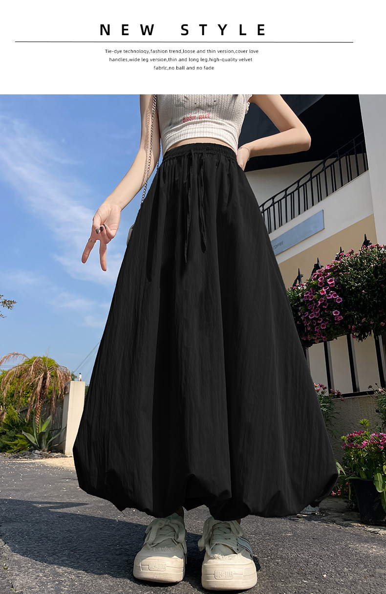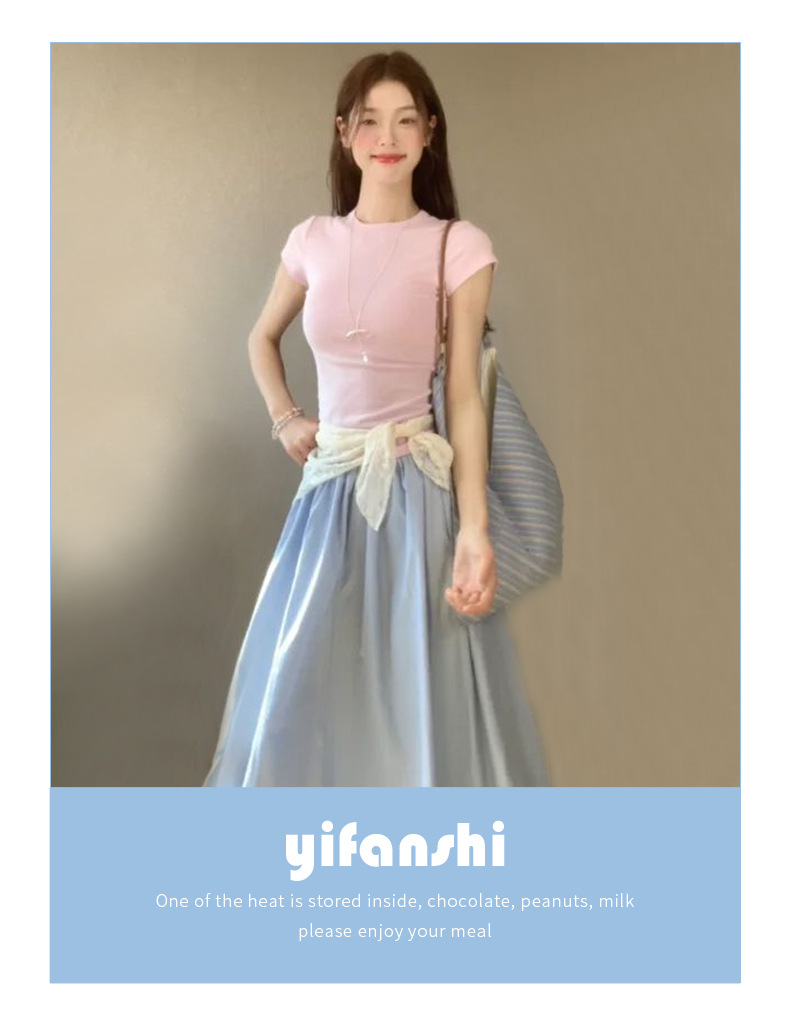 블루 플라워 버드 스커트 여성용 여름 얇은 2025 새로운 스타일 부드러운 높은 허리 A 라인 슬림 룩 아이스 실크 랜턴 스커트스토어 가기