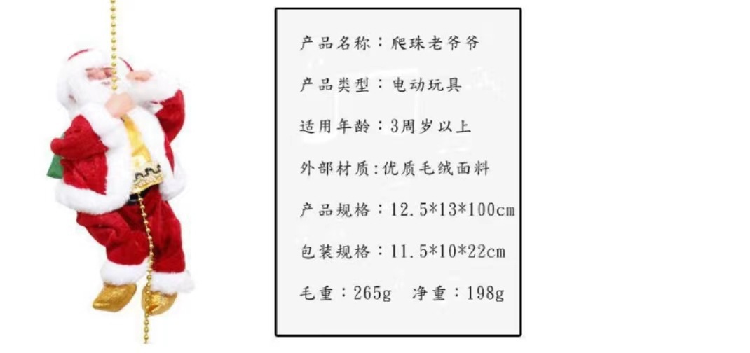 3단계 조절 가능한 음악 산타클로스 구슬/밧줄 오르기 인형 어린이 장난감 크리스마스 장식 선물 걸이