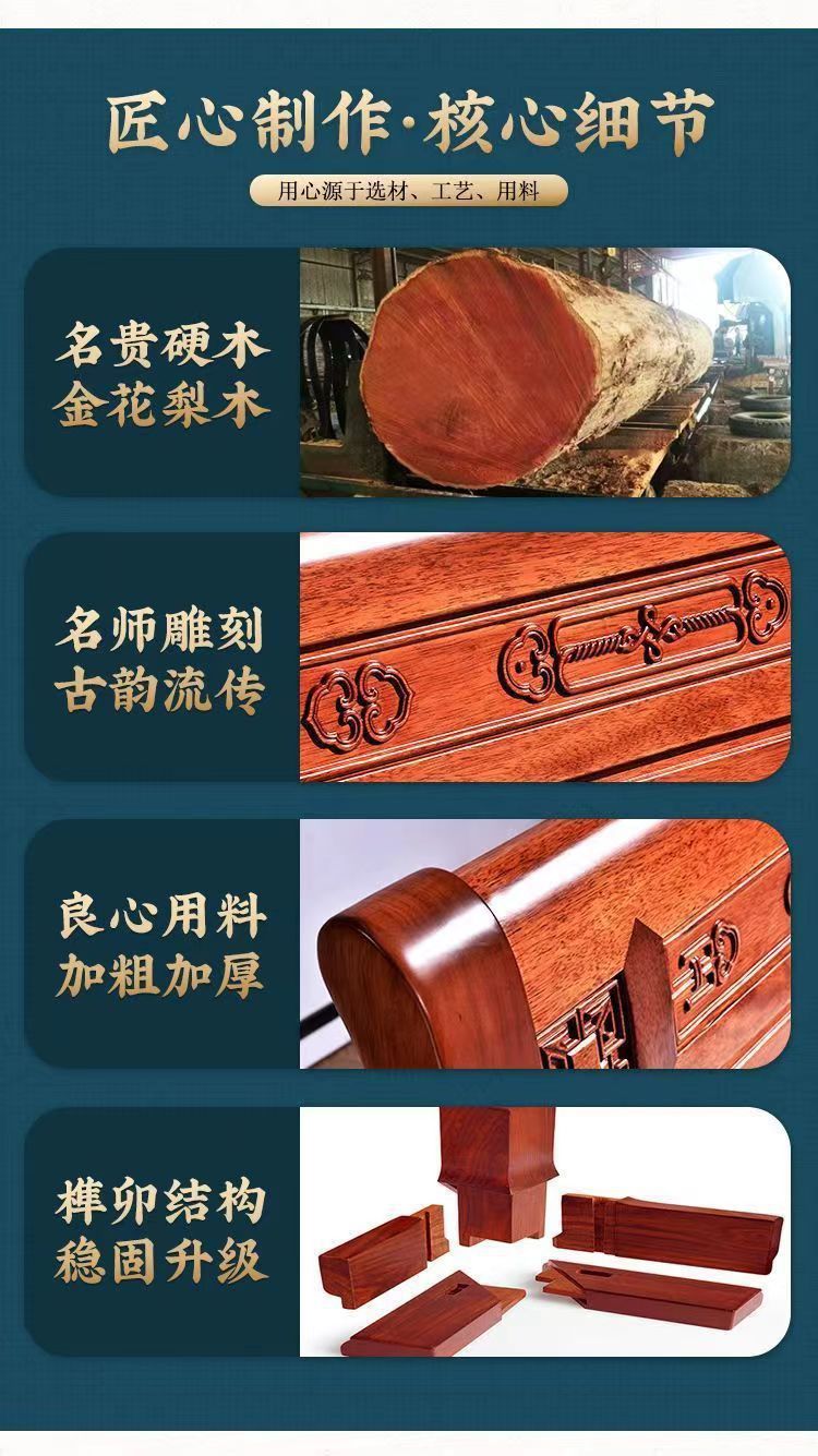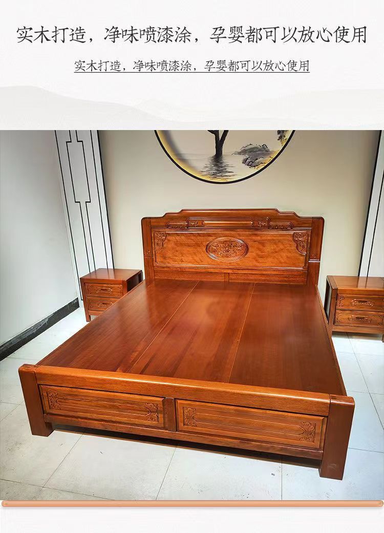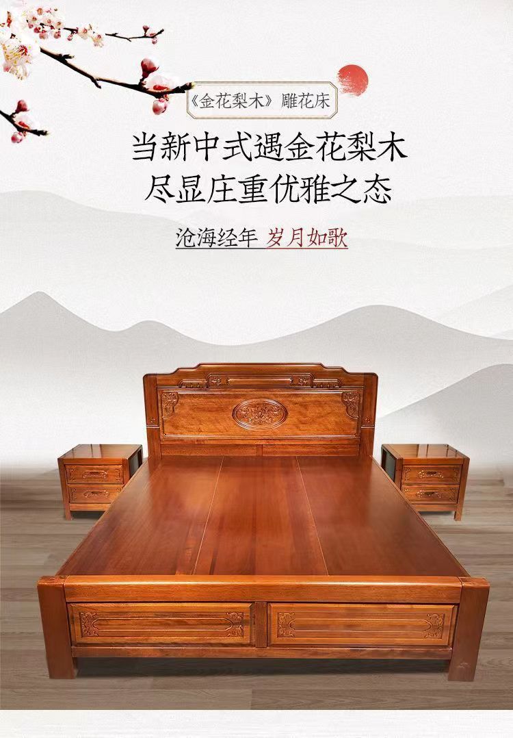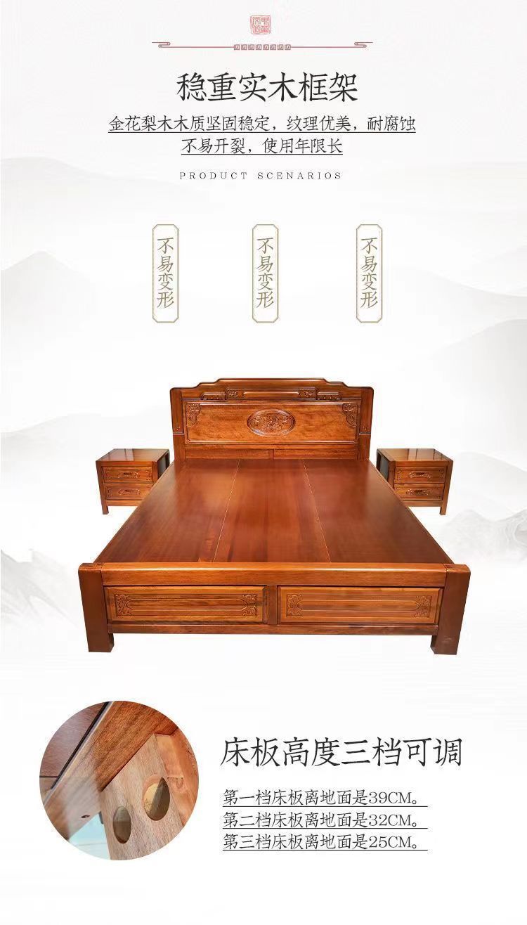 황금 로즈 우드 더블 침대 중국 스타일 모든 단단한 나무 골동품 조각 장내 및 테온 공동 큰 침대 1.5 미터 1.8 미터 마스터 침실 웨딩 침대스토어 가기