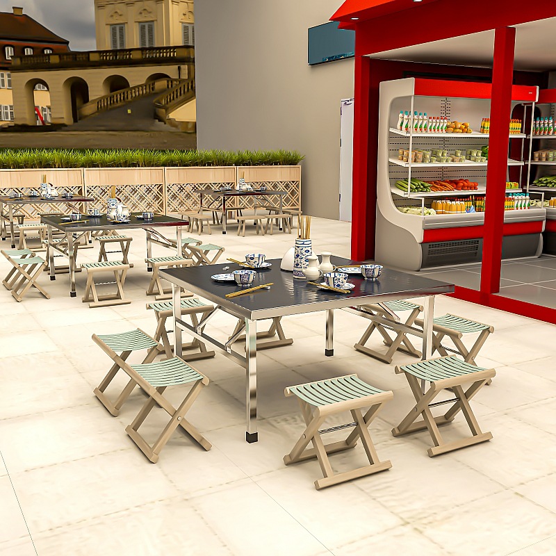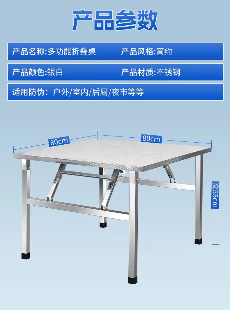 직판 스테인리스 접이식 테이블 야외 휴대용 두꺼운 접이식 테이블 가정용 상업용 캠핑 매점 식탁스토어 가기