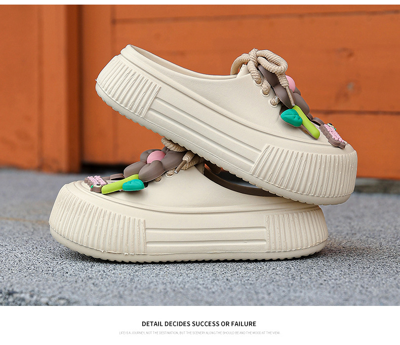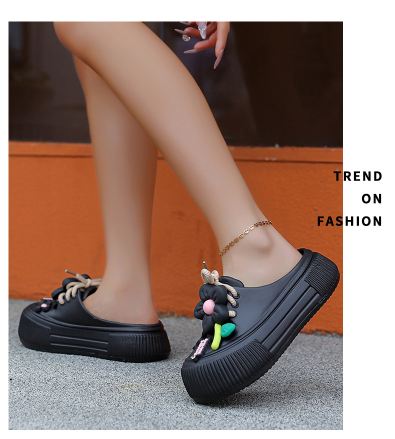 25 여름 새로운 아마존 테무 스티커 두꺼운 바닥 여성 드래그 미끄럼 방지 패션 부드러운 바닥 만화 스트랩 여성 도매
