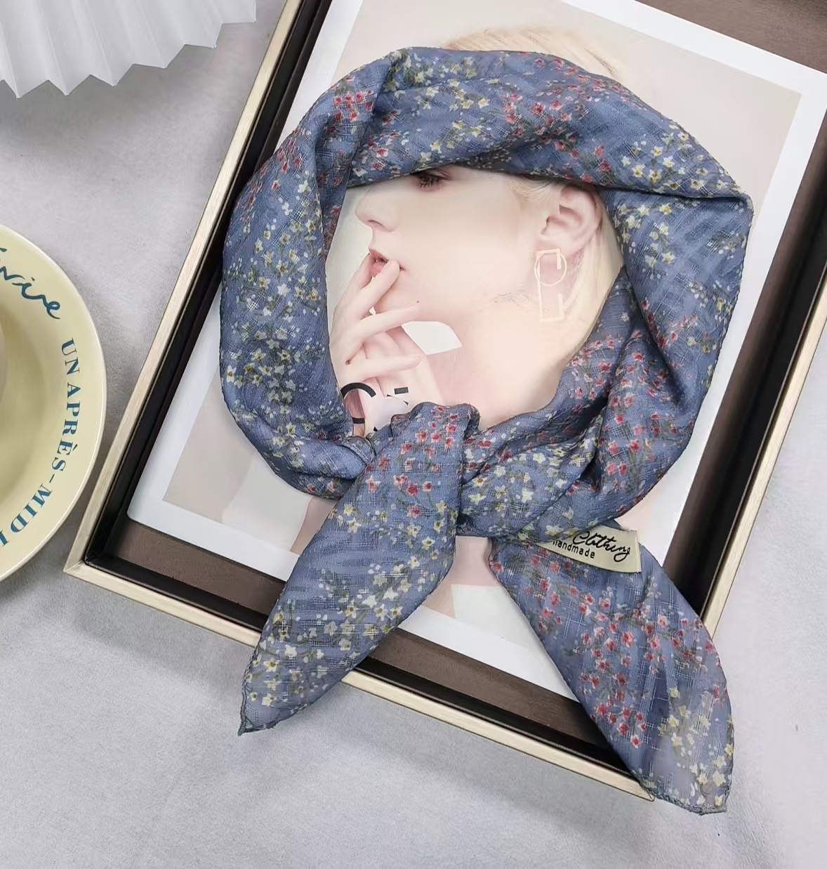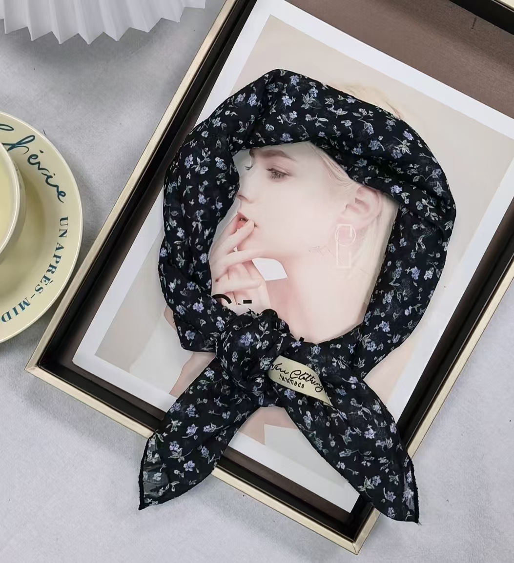 작은 사각형 수건 한국어 버전 ins 작은 신선한 면 및 린넨 꽃 사각형 수건 복고풍 봄 여름 새로운 스타일 예술적 다용도 장식 머리 스카프