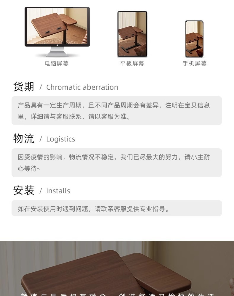 • 【높이 조절 가능/바퀴 부착】월넛 색상✓⚑