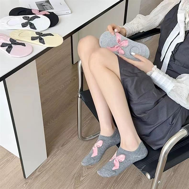 솔리드 컬러 보우 보트 양말 봄과 여름 얇은 보이지 않는 양말 트렌디 로우 컷 심플 크로스 보더 새로운 중국 스타일 발레 스타일스토어 가기