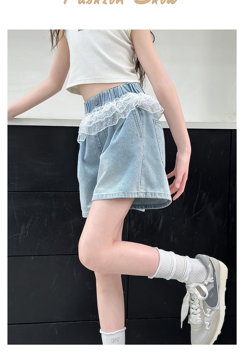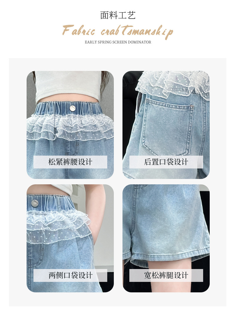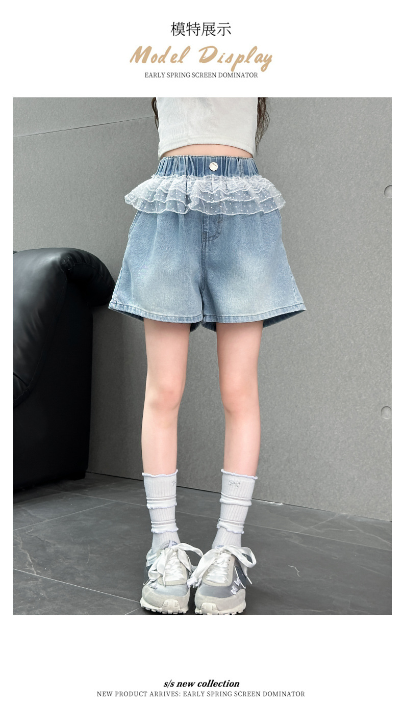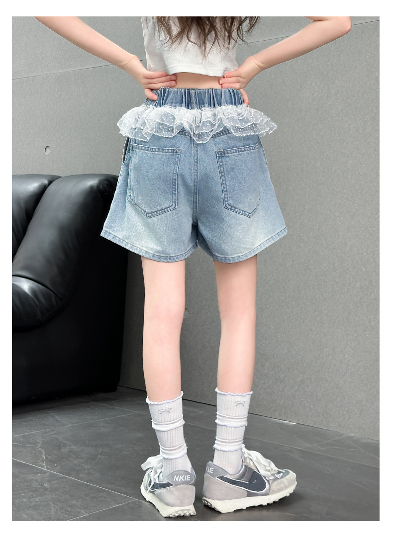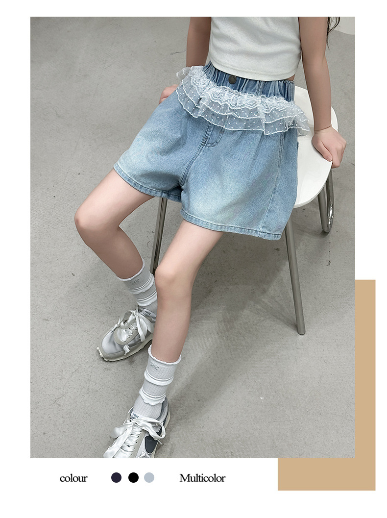 여자 레이스 반바지 2025 여름 캐주얼 바지 큰 어린이 패션 데님 핫 바지 어린 소녀 3 점 바지스토어 가기