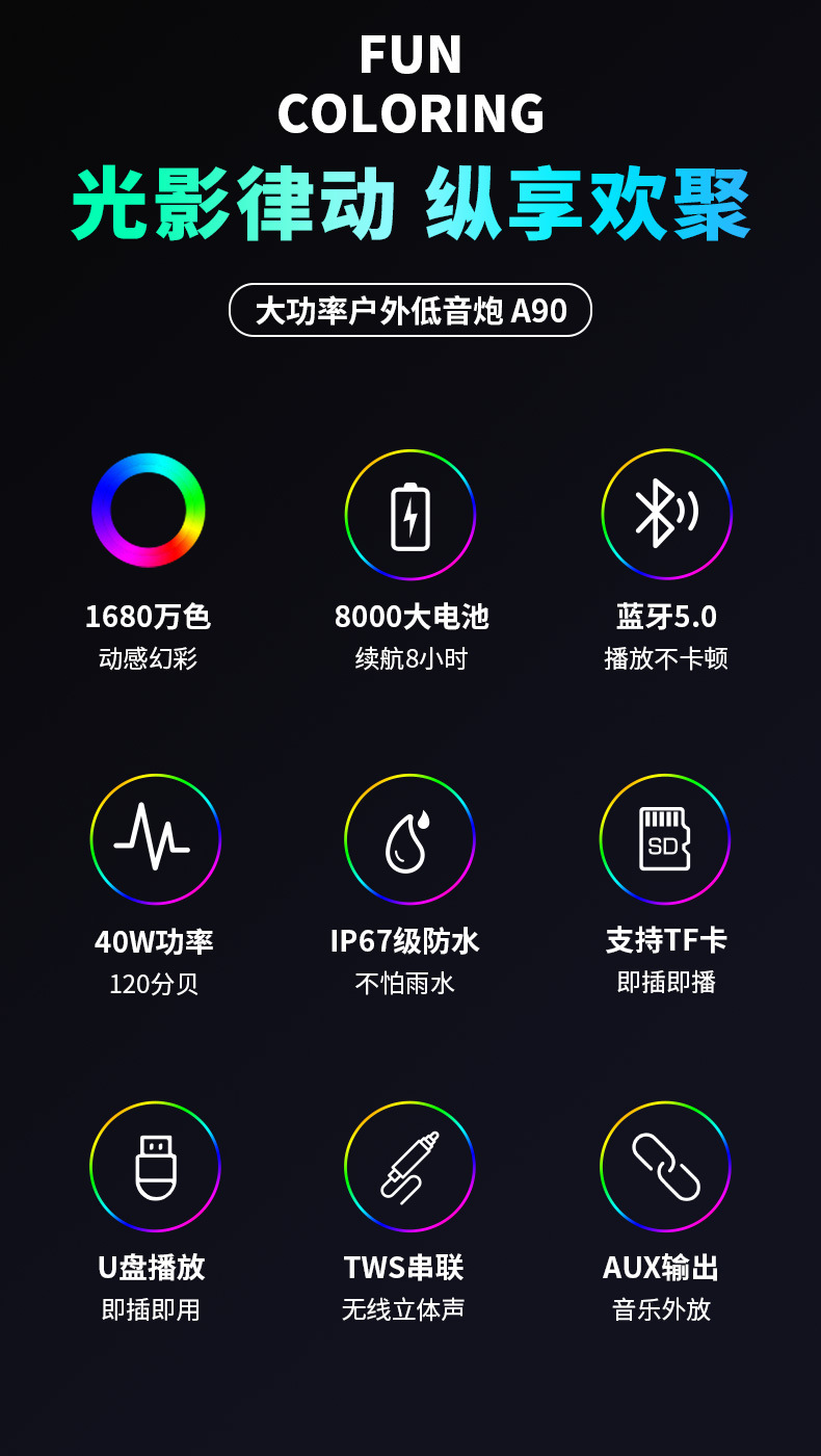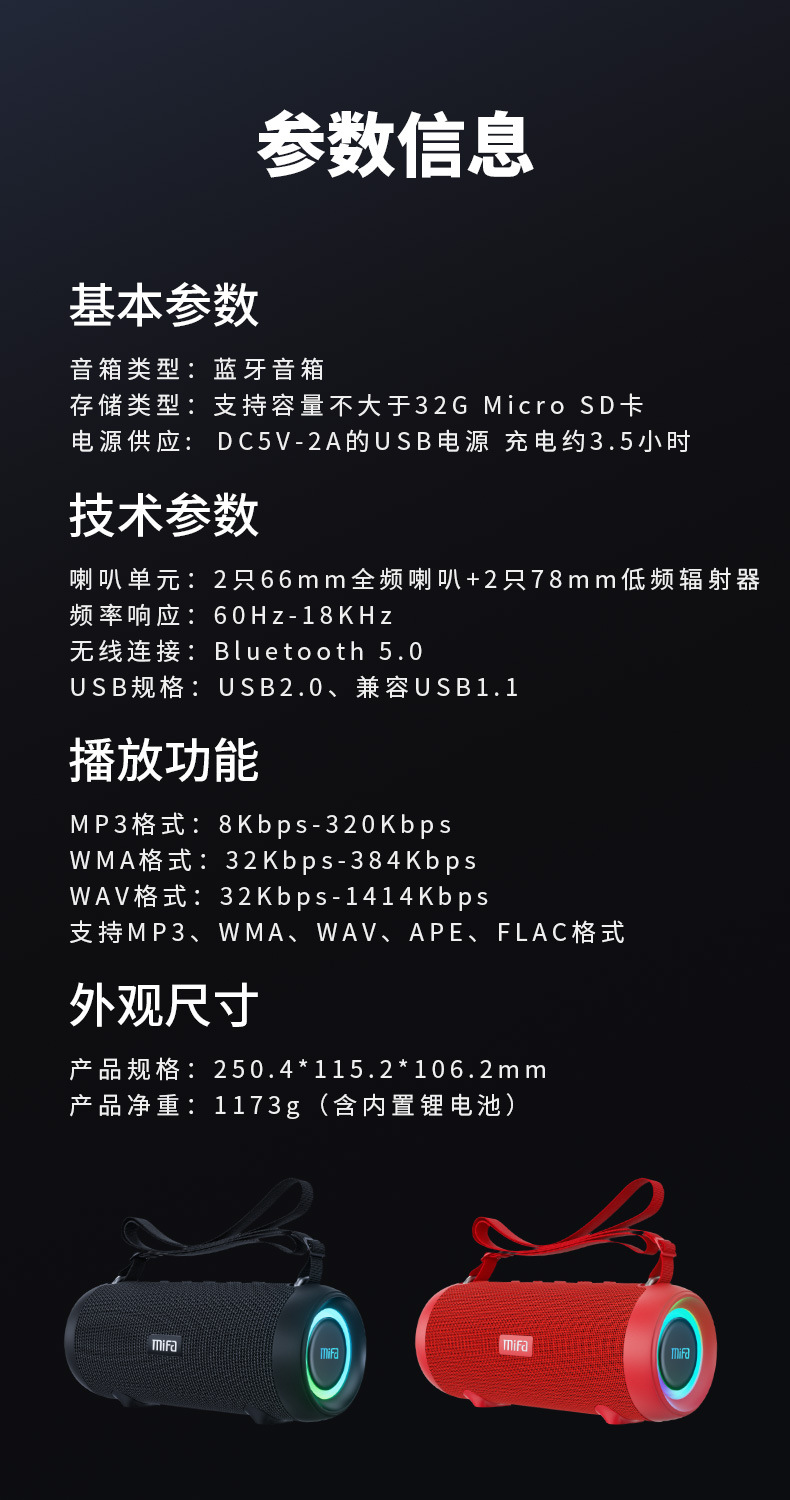 MIFA A90 야외 블루투스 스피커 휴대용 카드 서브우퍼 듀얼 스피커 고품질 및 긴 배터리 수명스토어 가기