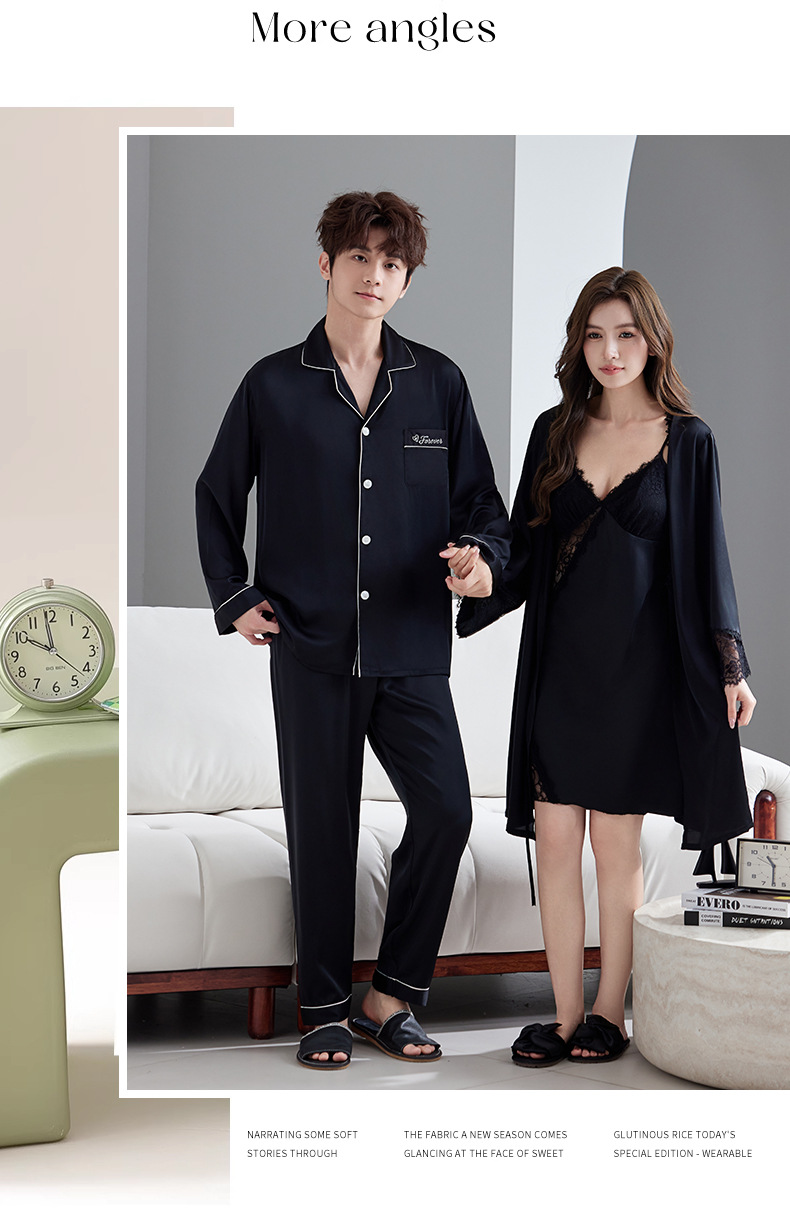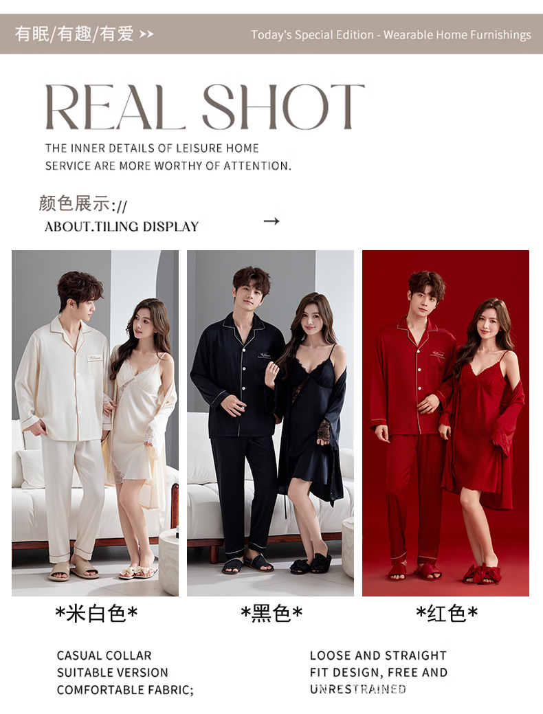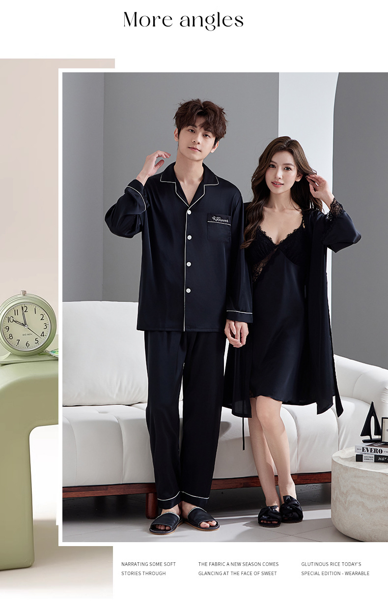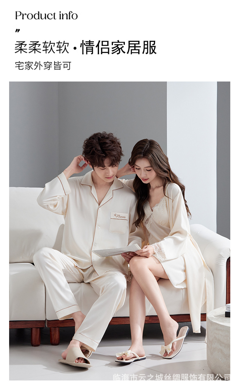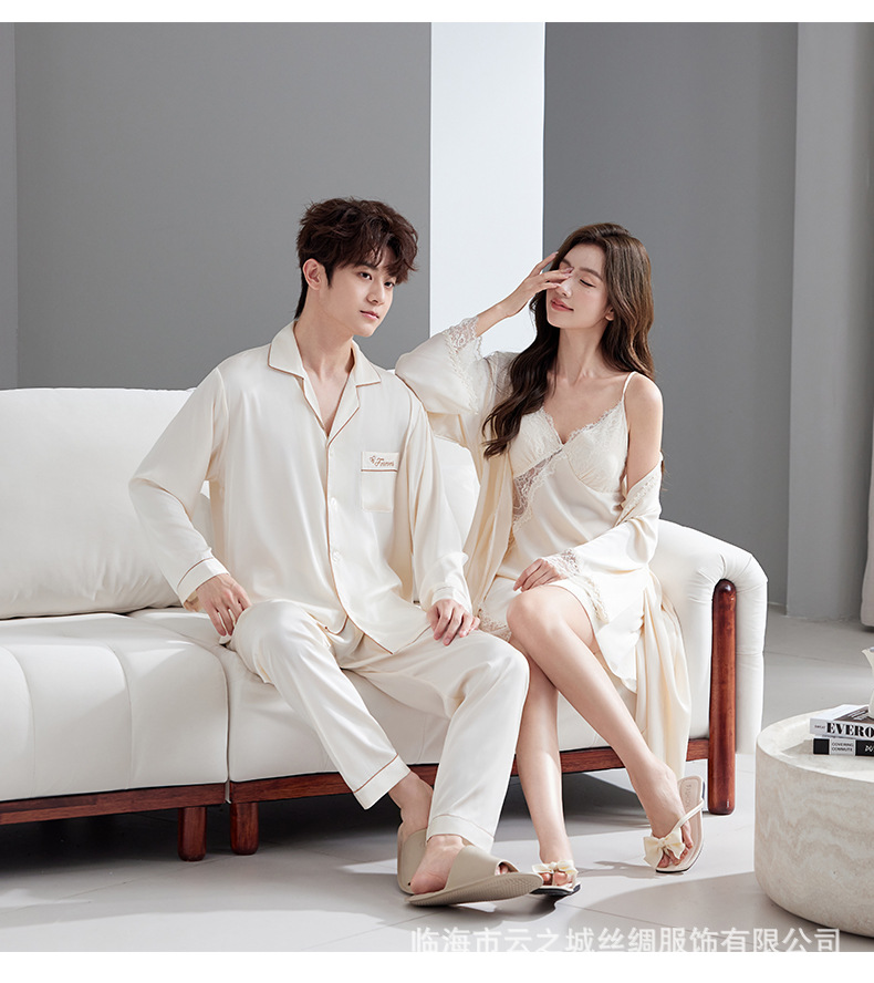 봄과 가을 새로운 커플 홈웨어 남성과 여성의 잠옷 투피스 슈트 여름 가슴 패드 실크 섹시한 얇은 스타일스토어 가기