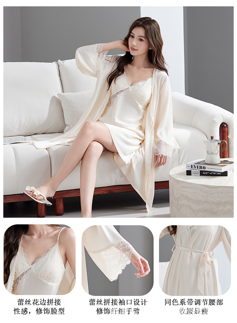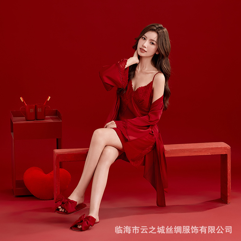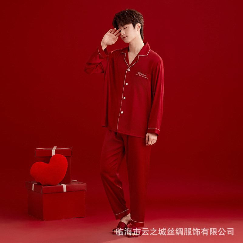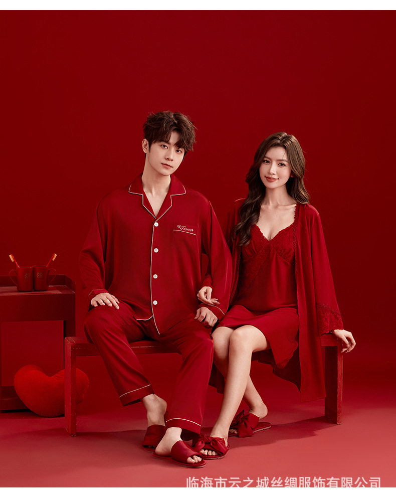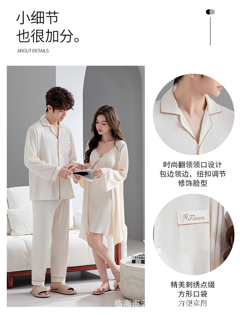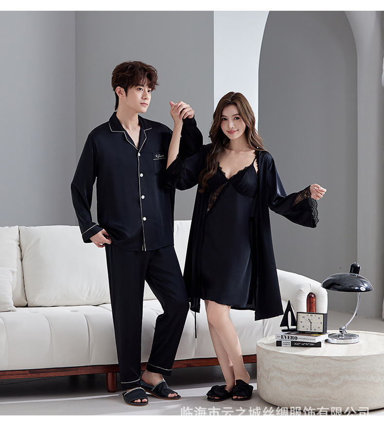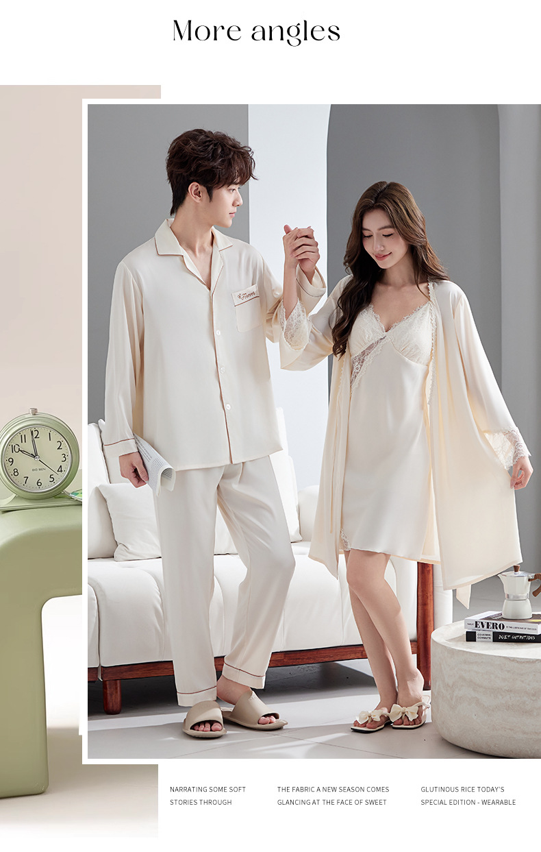 봄과 가을 새로운 커플 홈웨어 남성과 여성의 잠옷 투피스 슈트 여름 가슴 패드 실크 섹시한 얇은 스타일스토어 가기