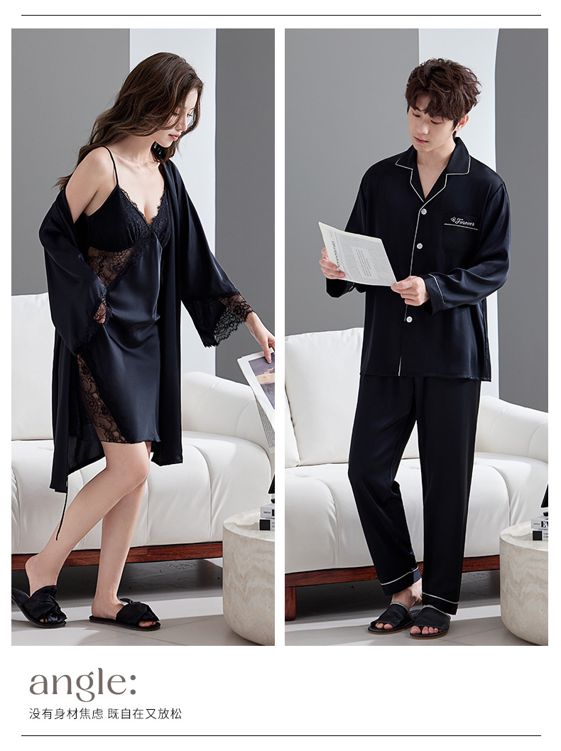 봄과 가을 새로운 커플 홈웨어 남성과 여성의 잠옷 투피스 슈트 여름 가슴 패드 실크 섹시한 얇은 스타일