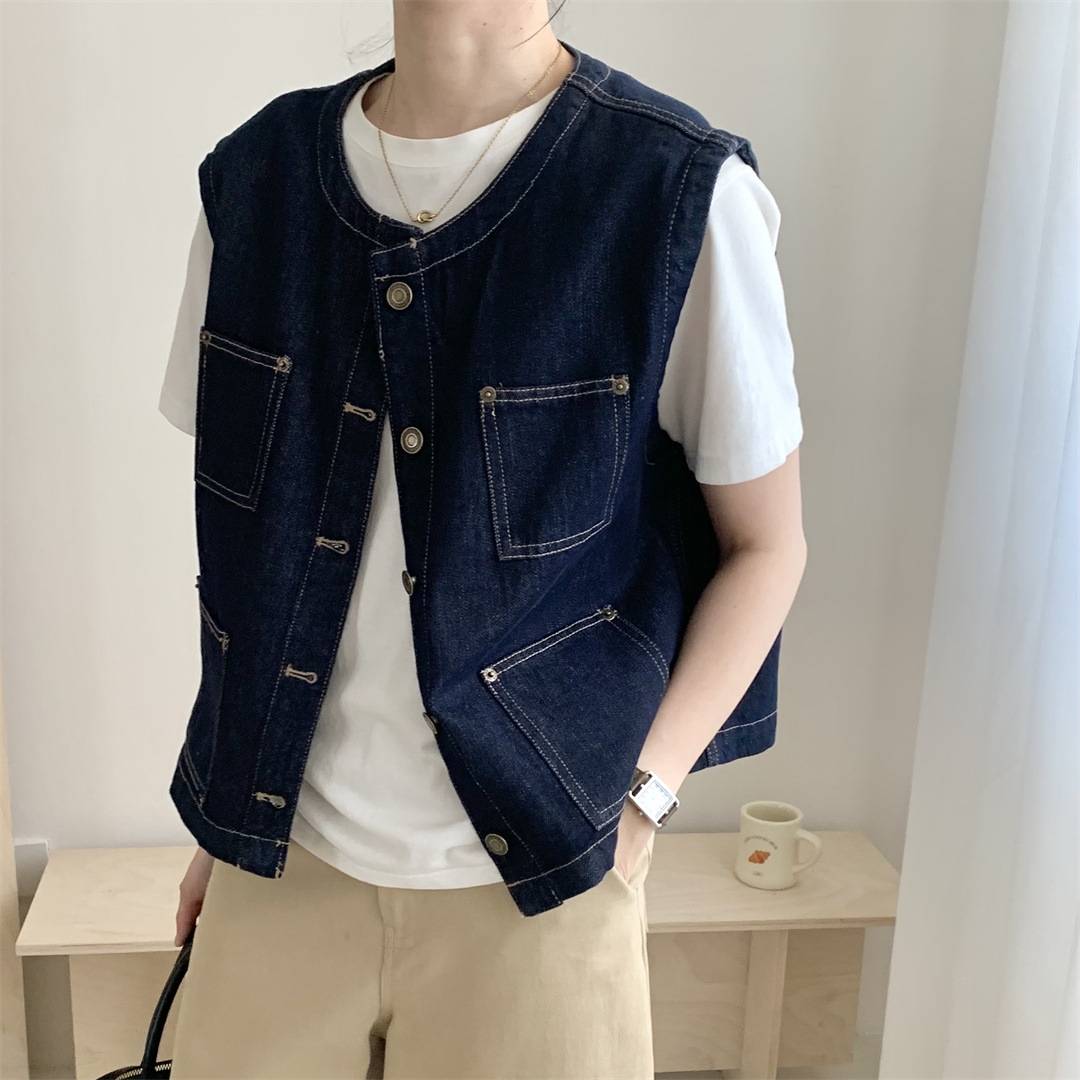올드 머니 스타일 패션 빈티지 데님 조끼 2025 새로운 여성 캐주얼 스택 데님 올 매치 여성스토어 가기
