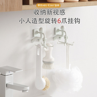 多功能可旋转360度小人6爪挂钩厨房免打孔挂架无痕强力粘钩置物架