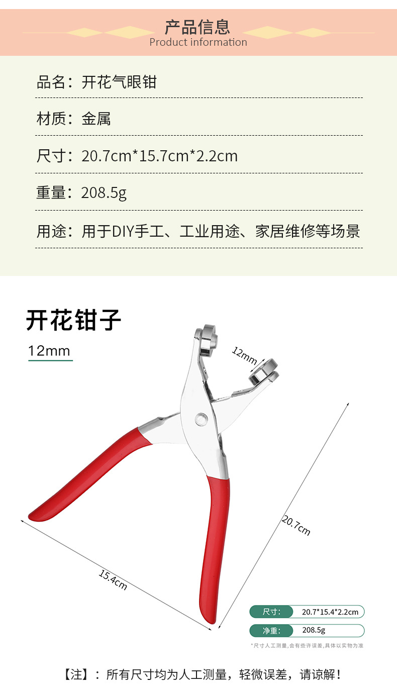 꽃무늬 아이 버클 6/12mm 설치 도구 가방 액세서리 신발 끈 금속 원형 아이 버클 에어 아이 펜치