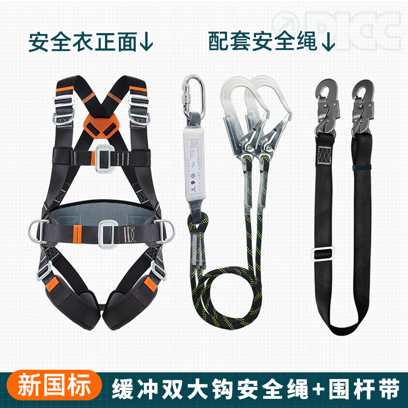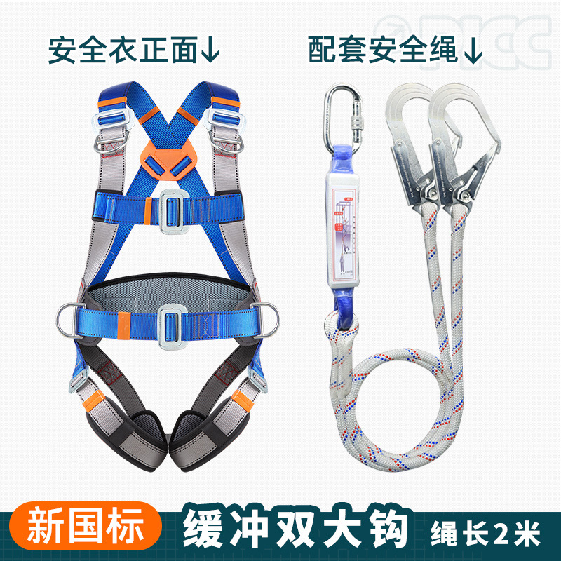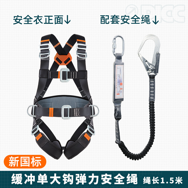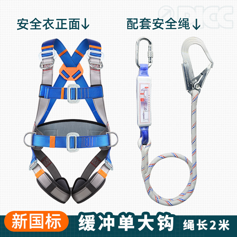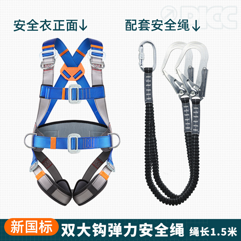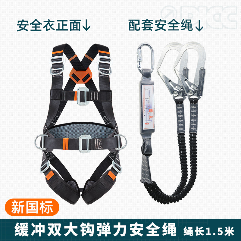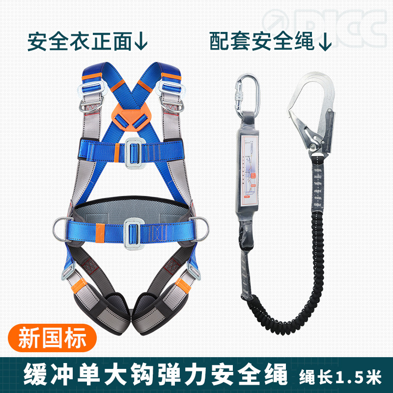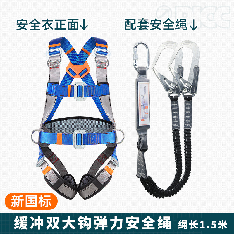 새로운 국가 표준 전신 5 점 안전 벨트 이중 대형 후크 버퍼 백 오버 검사 항공 작업을위한 낙하 방지 안전 벨트스토어 가기
